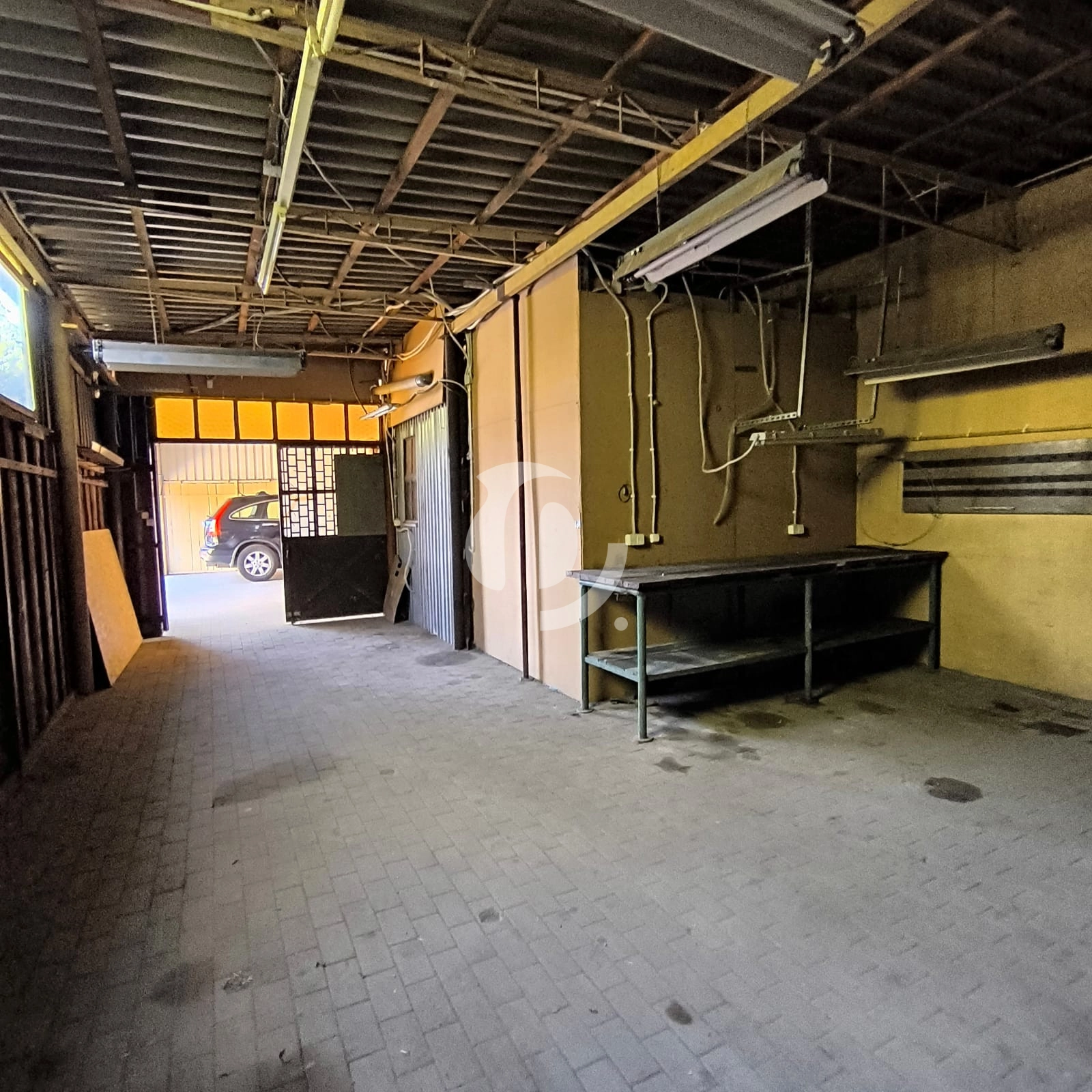– część magazynowo – warsztatowa z wydzielonym zapleczem socjalnym i biurem. Łączna powierzchnia tej cześci to ok 55m2. wjazd przez bramę (2×2,5m)