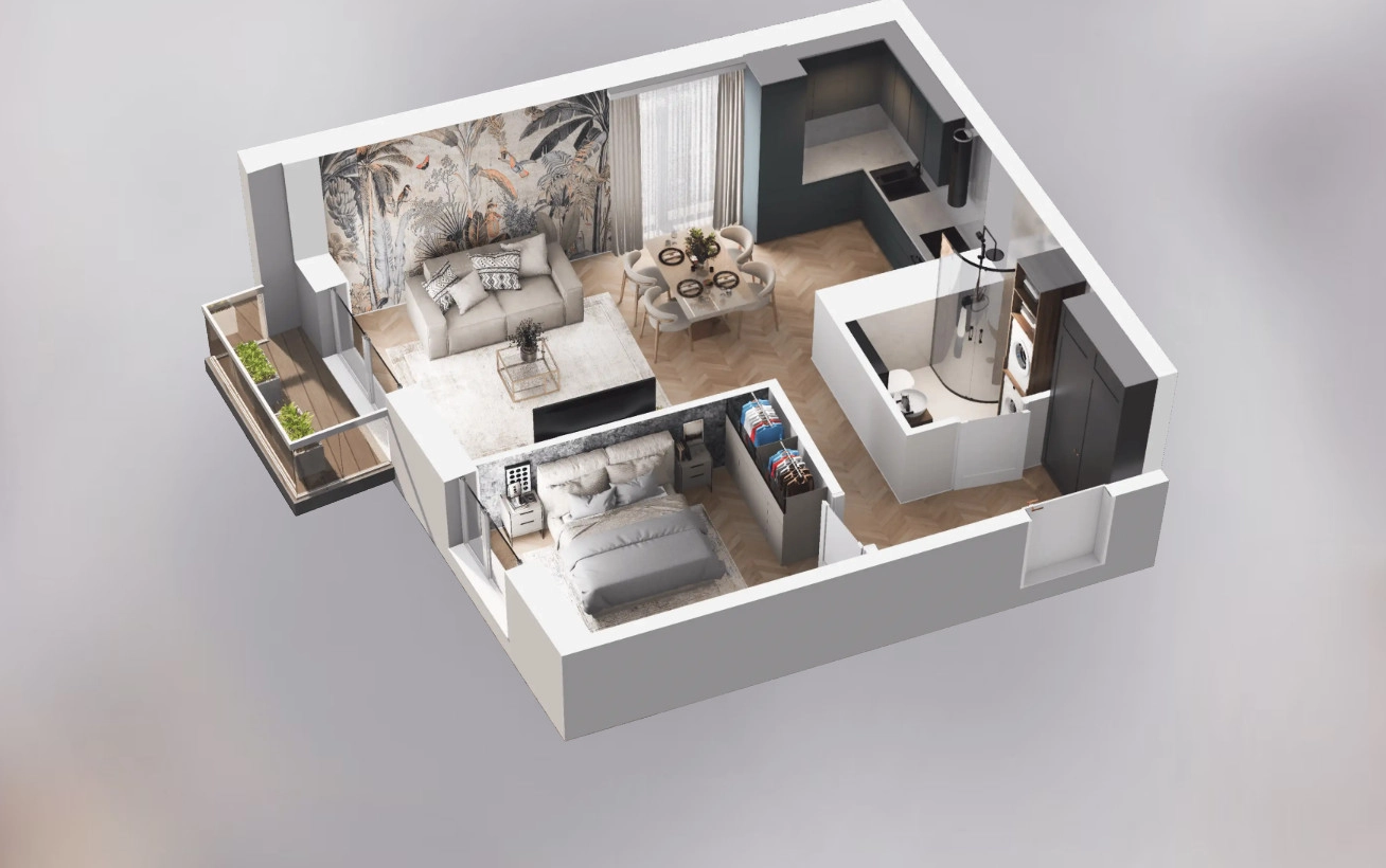 Narożne i doskonale doświetlone 2 Pokoje 44 m², 2 piętro – balkon od zachodu! Sklepy, tramwaj, szkoły i tereny zielone – wszystko w zasięgu spaceru.