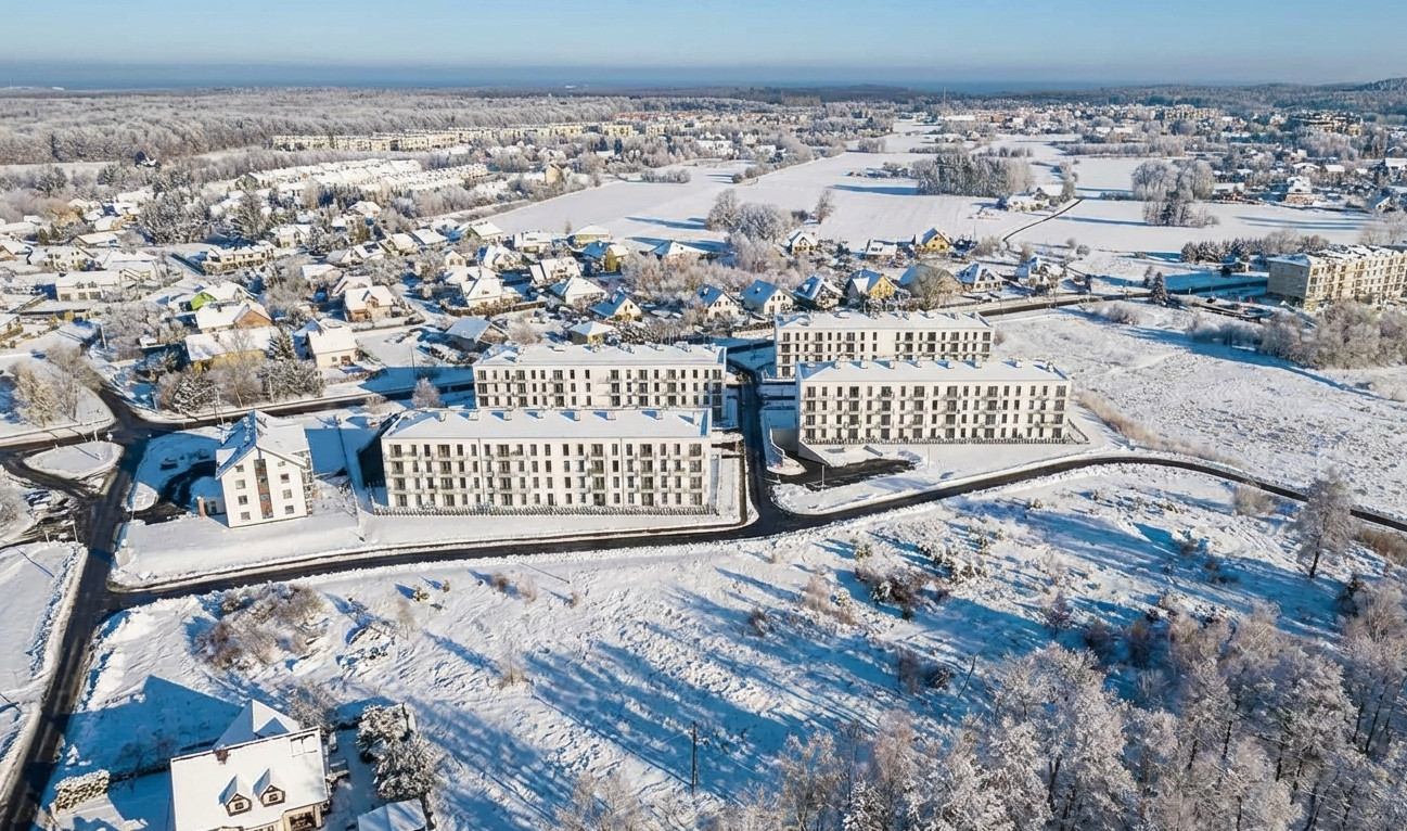 • Lokalizacja: Chwarzno Wiczlino, Gdynia — osiedle położone w otoczeniu Trójmiejskiego Parku Krajobrazowego, ok. 10 min pieszo do granicy lasu.