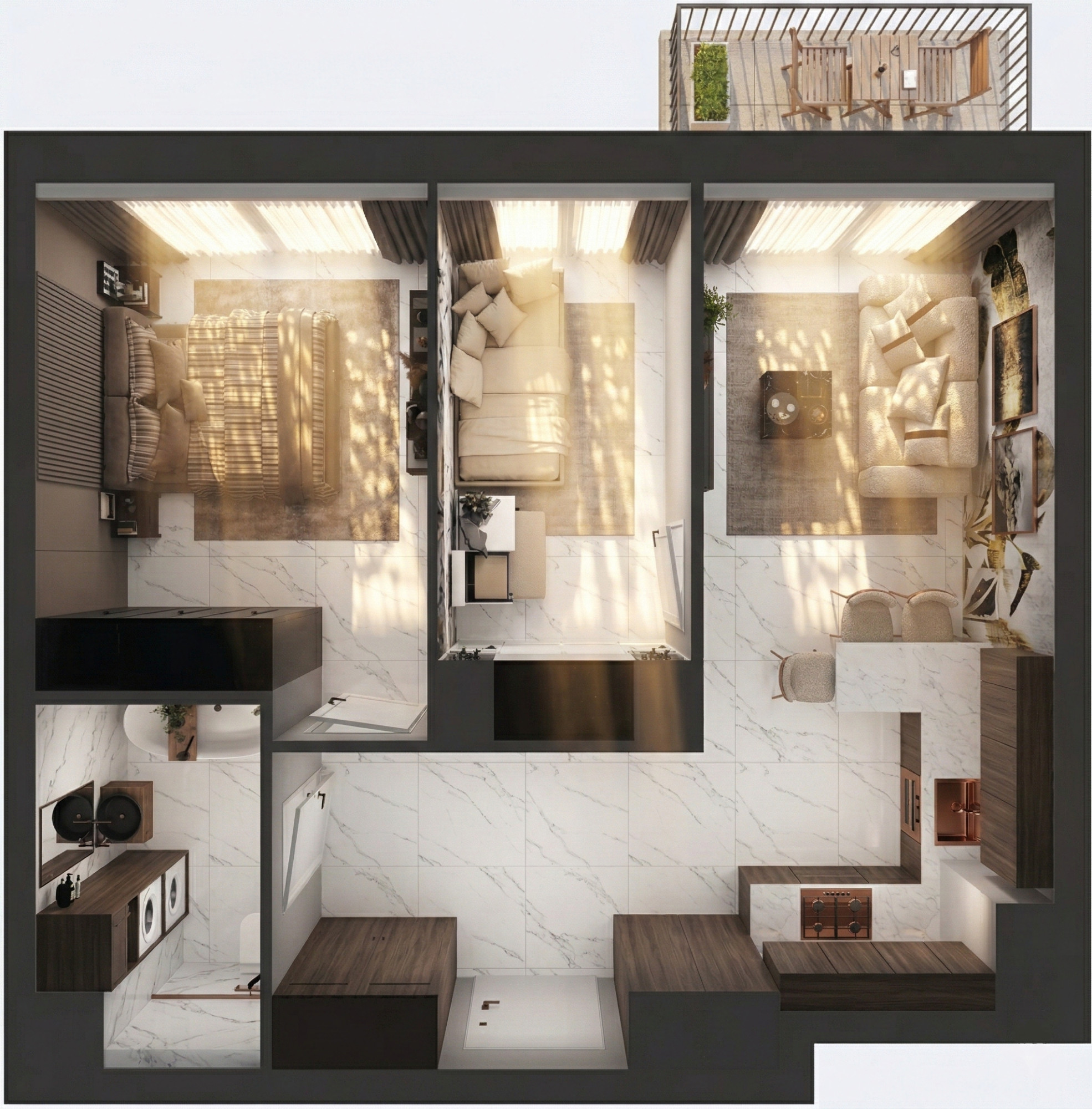Wizualizacje mają charakter poglądowy i nie stanowią oferty w rozumieniu art. 66 Kodeksu cywilnego. Mieszkanie sprzedawane w stanie deweloperskim. Zapraszam do kontaktu — chętnie umówię prezentację i przygotuję dodatkowe materiały.