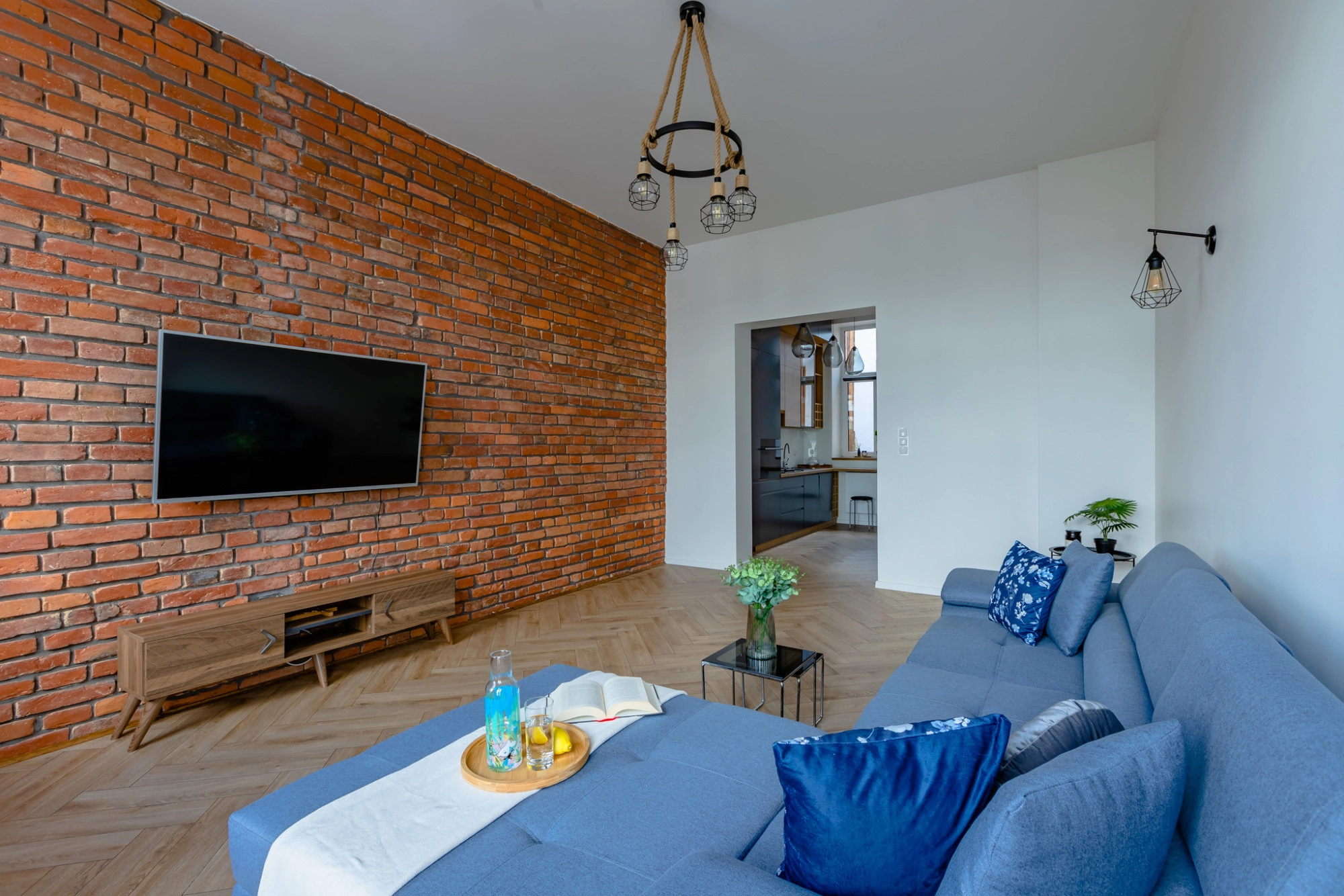– Renowację oryginalnej cegły w salonie, która nadaje wnętrzu unikalny styl