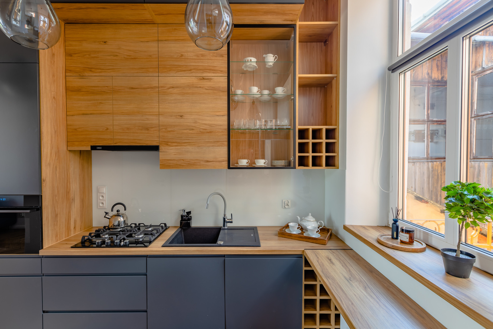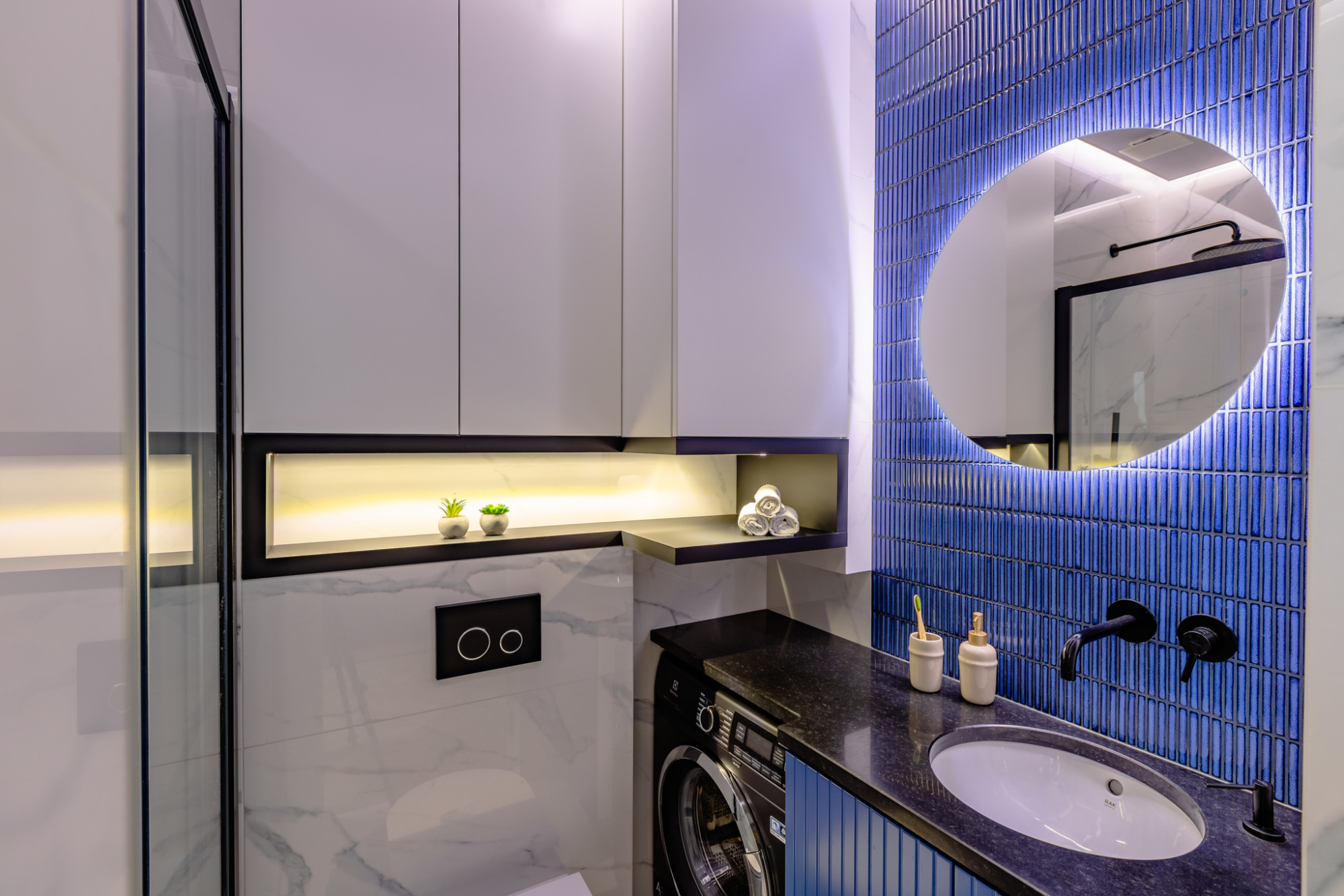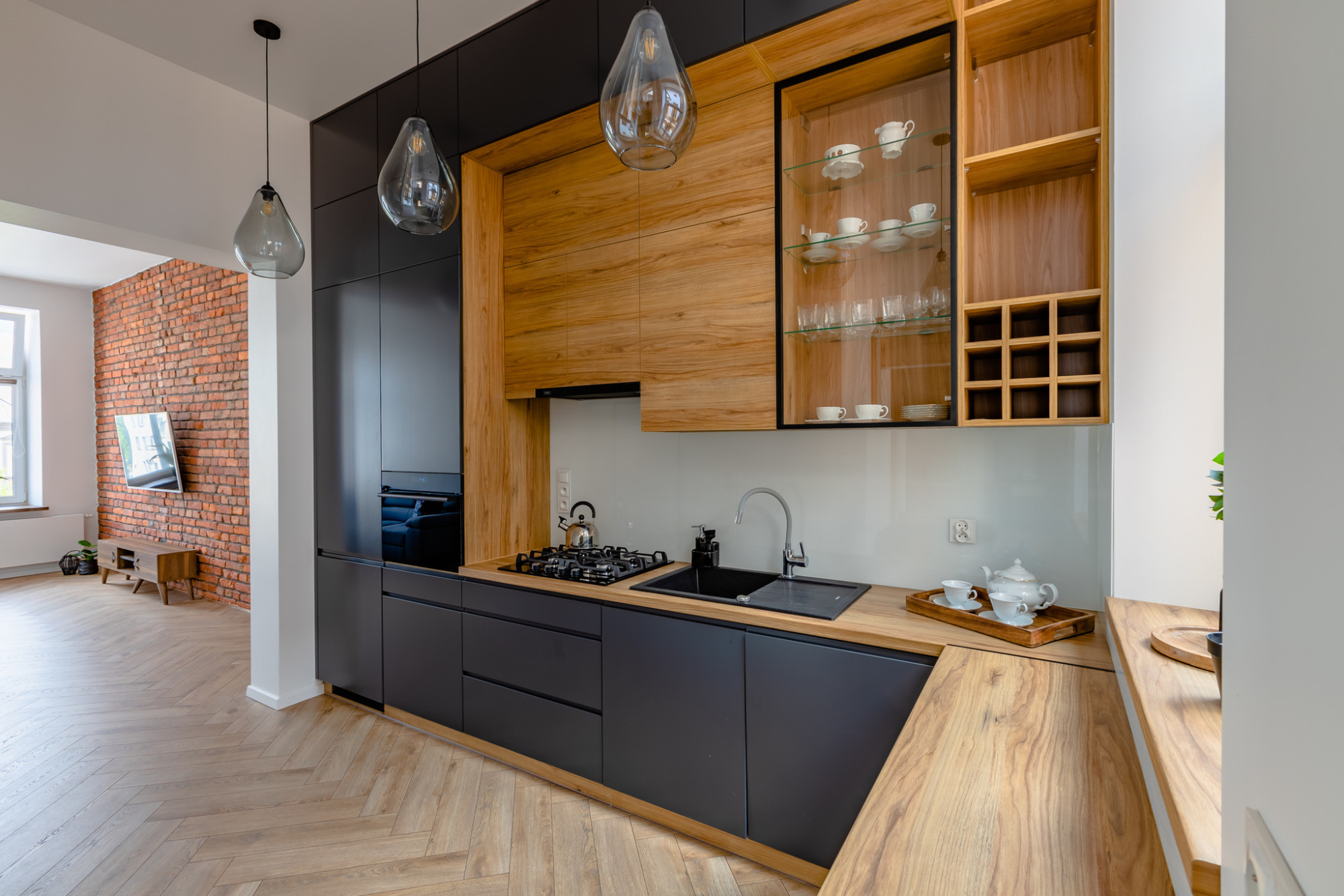 – Nowoczesną zabudowę kuchni wyposażoną w sprzęty AGD marki Samsung (chłodziarko-zamrażarka, zmywarka, piekarnik z mikrofalą, płyta gazowa) oraz elegancki granitowy zlewozmywak Plados.