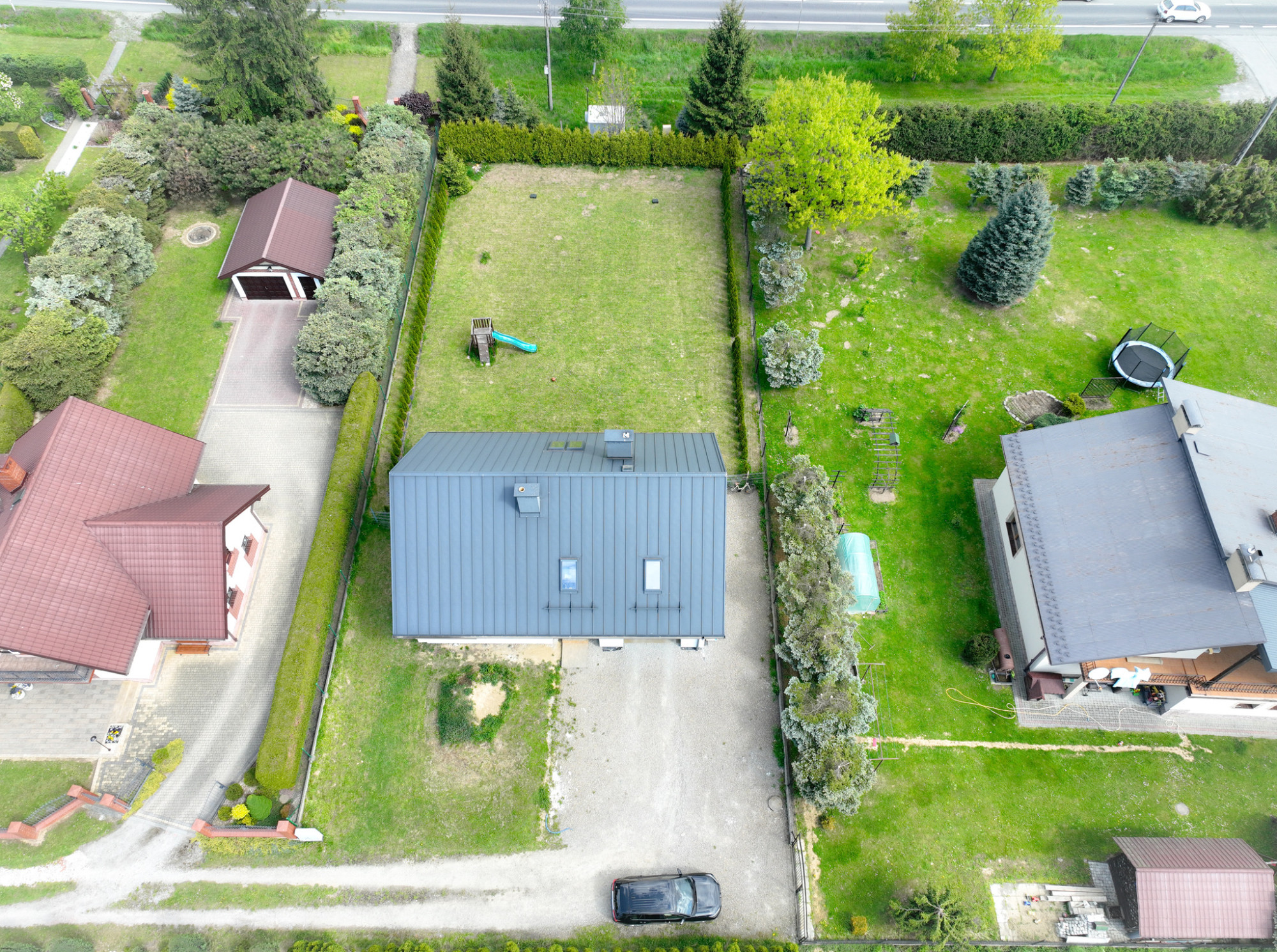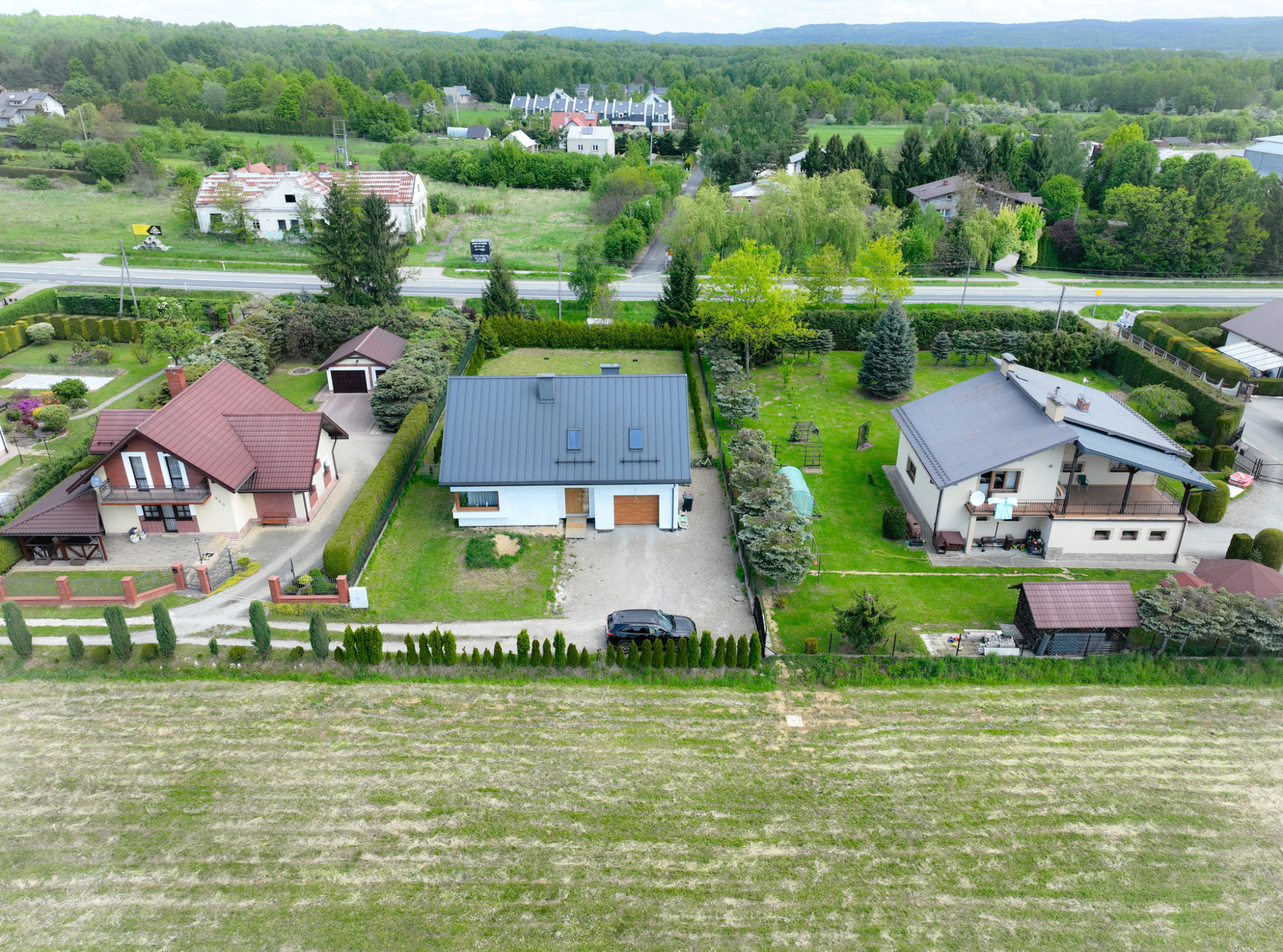 Nieruchomość zlokalizowana jest w spokojnej, nowoczesnej zabudowie jednorodzinnej, z doskonałym dojazdem – drogą gminną, a następnie poprzez służebność gruntową.