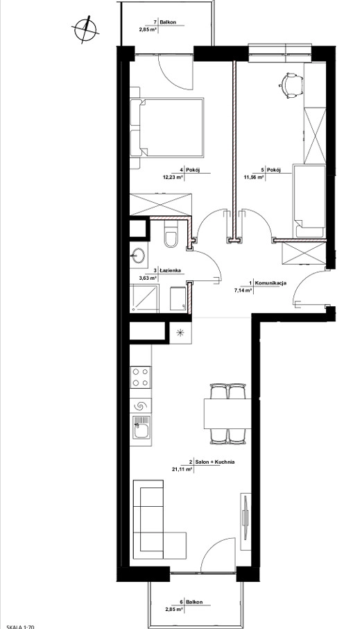 Oferuję na sprzedaż wyjątkowe mieszkanie o powierzchni 55 m², położone na pierwszym piętrze nowoczesnego, 5-piętrowego budynku z windą. To 3-pokojowe mieszkanie z bardzo funkcjonalnym układem oraz dwoma balkonami o powierzchni 2,84 m2, znajdującymisię po przeciwległych stronach mieszkania. Salon od strony południowej z pięknym widokiem! – gdzie słońce dociera praktycznie cały dzień.