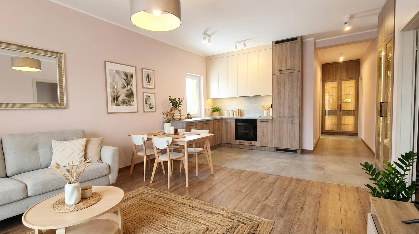 Wszystkie elementy są nowe, objęte gwarancją i nie były wcześniej użytkowane. Mieszkanie dosłownie pachnie nowością. Wystarczy umeblować pokoje i można się wprowadzać – bez stresu, ekip remontowych i dodatkowych kosztów. To realna oszczędność czasu i pieniędzy.