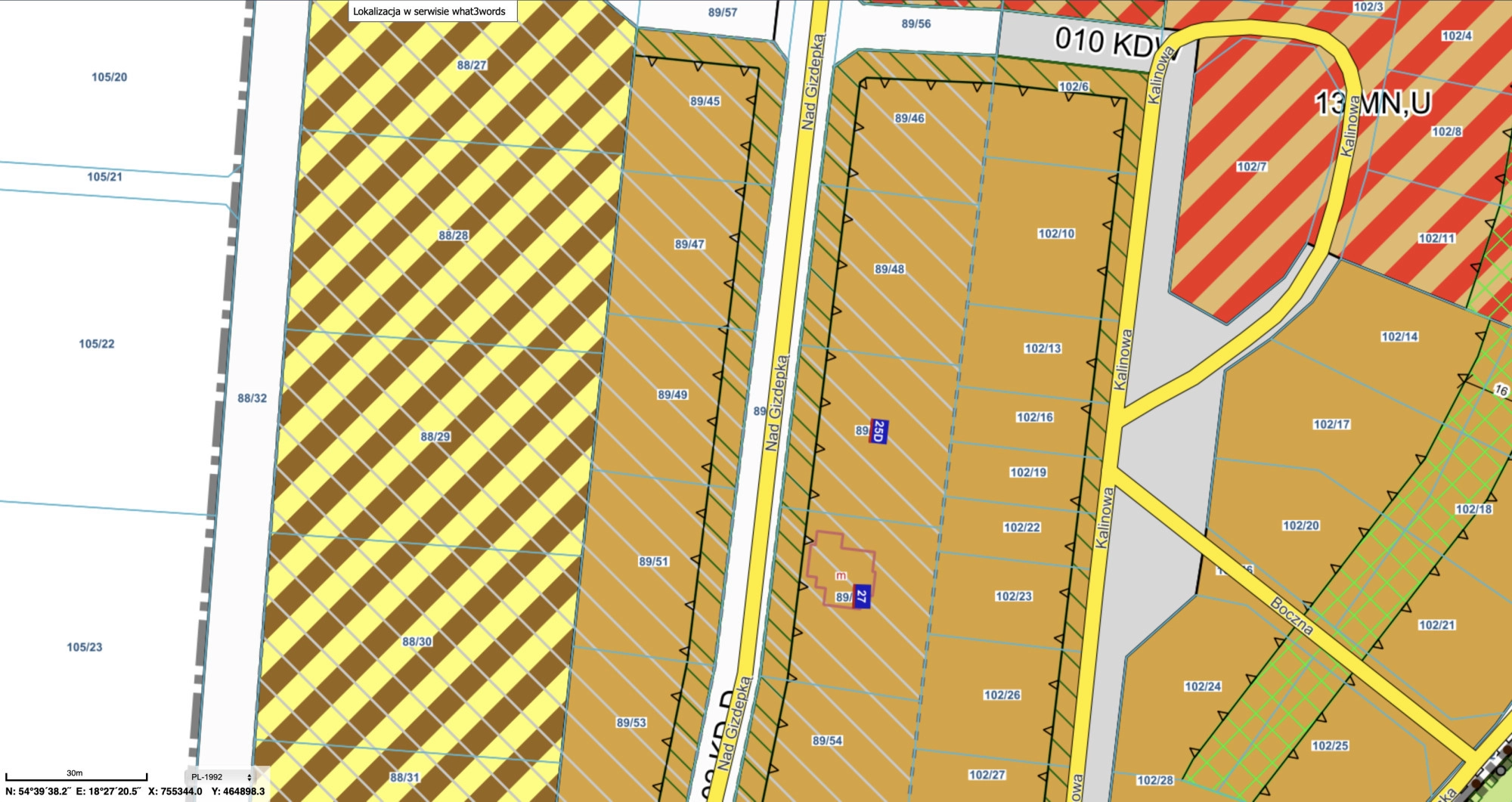 Zgodnie z Miejscowym Planem Zagospodarowania Przestrzennego jest przekształcona pod zabudowę mieszkalną jednorodzinną wraz z konieczną do ich funkcjonowania infrastrukturą dodatkową (budynki – garaże i gospodarcze) (techniczną – dojazdy, drogi wewnętrzne, dojścia) oraz obowiązkowymi terenami zielonymi (pow. biologicznie czynna; odgrodzenie między działkami zgodnie z projektem). Wysokość budynku do 9m.