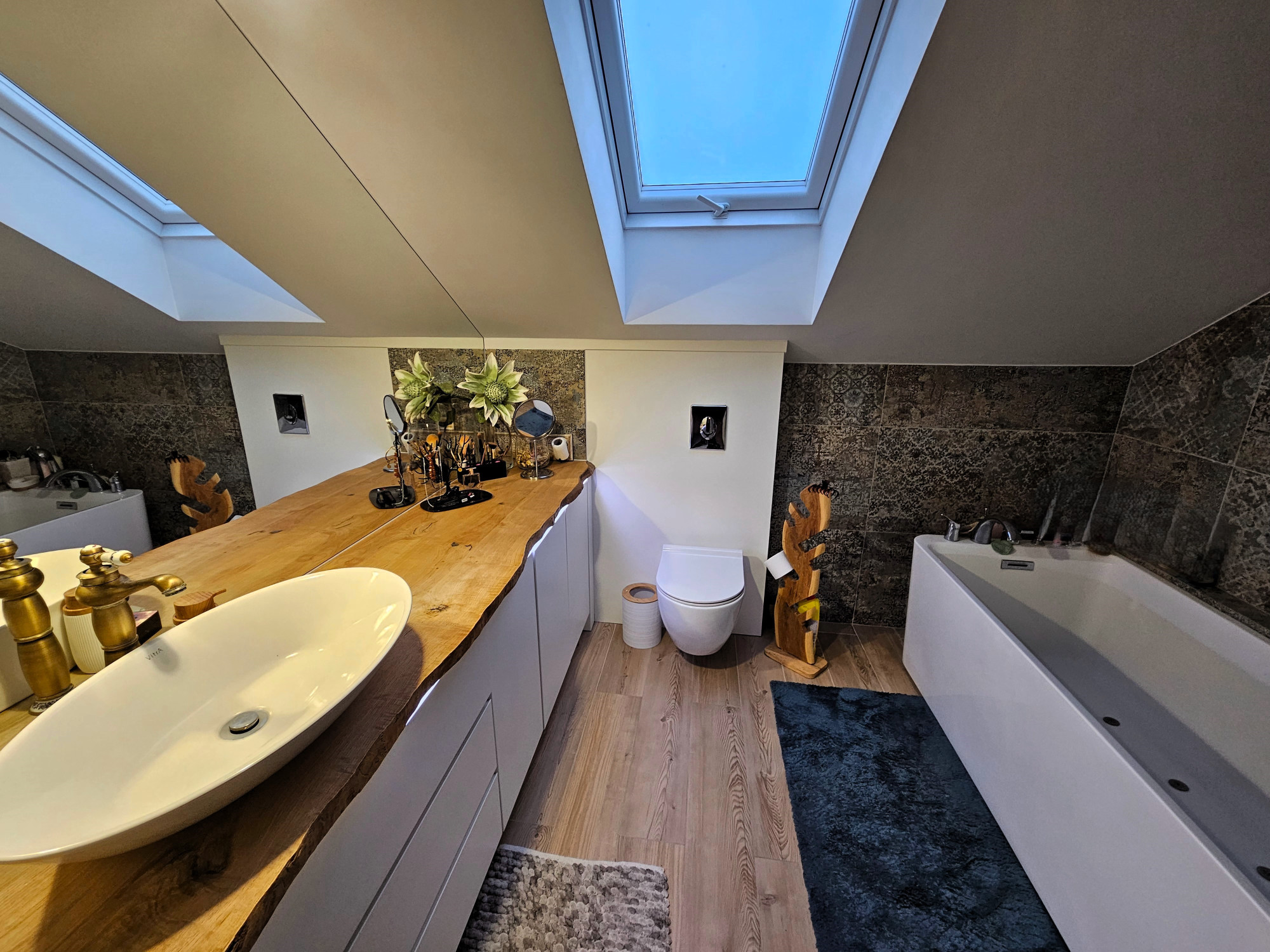 Poddasze: 2 pokoje, łazienka z wanną, garderoba, pralnia