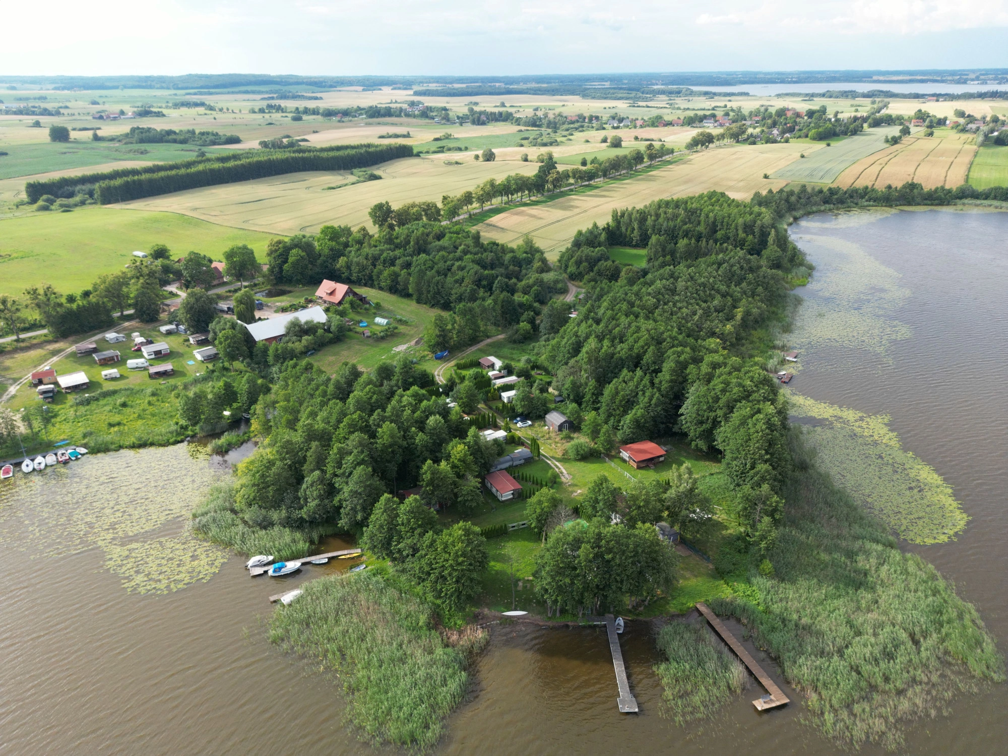 Teren objęty jest miejscowym planem zagospodarowania przestrzennego gminy Zalewo. Przeznaczenie: usługi turystyki wodnej oraz w części tereny rolne. Daje to szerokie możliwości zagospodarowania – od domków letniskowych, przez marinę z infrastrukturą, po glamping, wypożyczalnię sprzętu wodnego czy małą gastronomię.