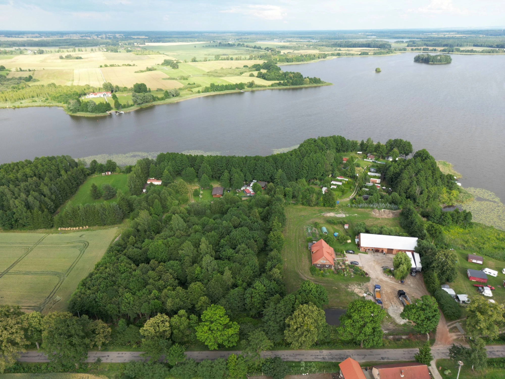 Obecnie część nieruchomości jest wydzierżawiona pod przyczepy kempingowe, co generuje stały roczny dochód z dzierżawy, stanowiący dodatkowy atut inwestycyjny.