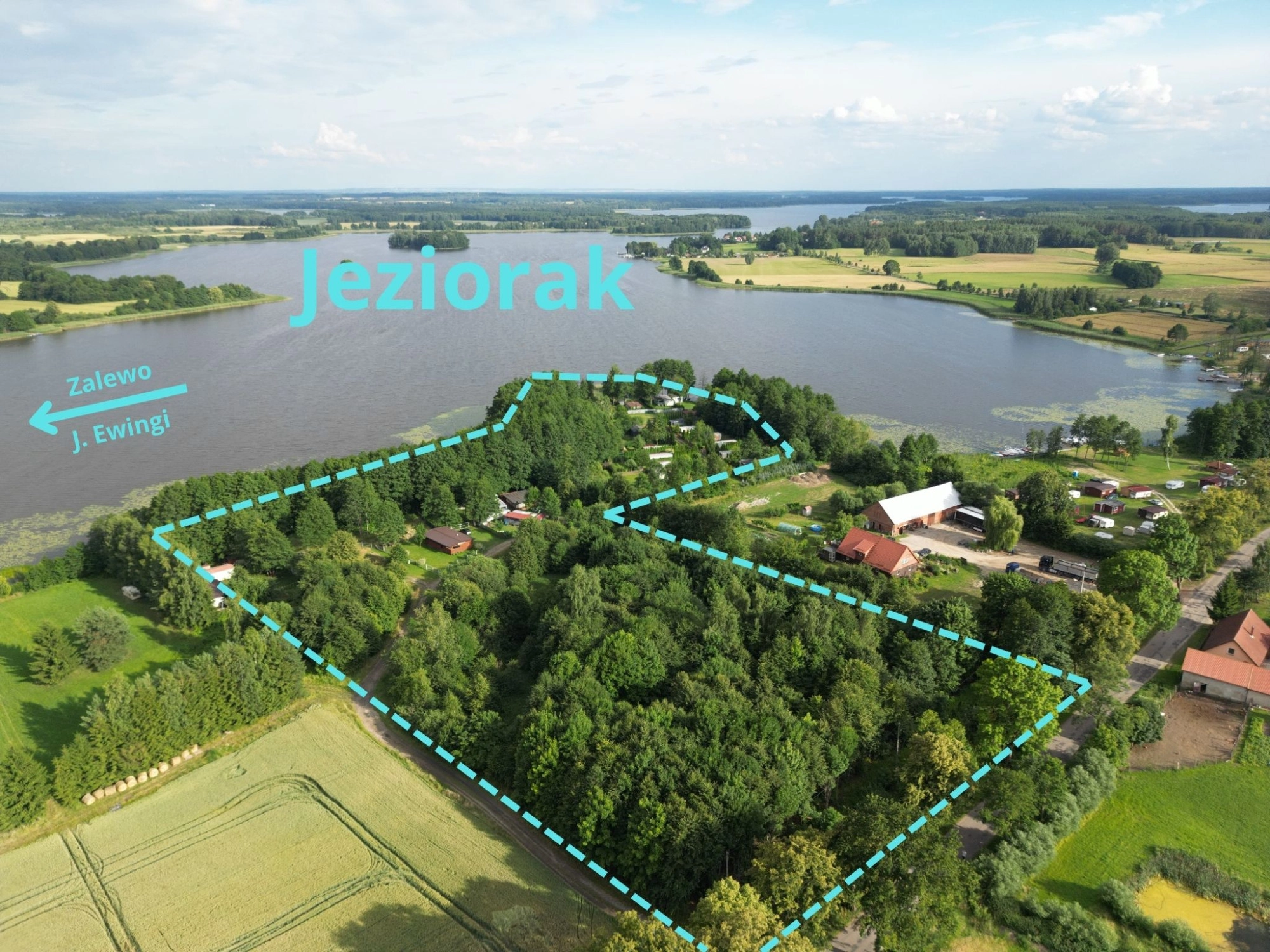 Oferuję do sprzedaży wyjątkową nieruchomość gruntową o powierzchni 37 941 m² (3,7941 ha), położoną na niewielkim półwyspie z niemal 400-metrową linią brzegową Jeziora Jeziorak – najdłuższego jeziora w Polsce.