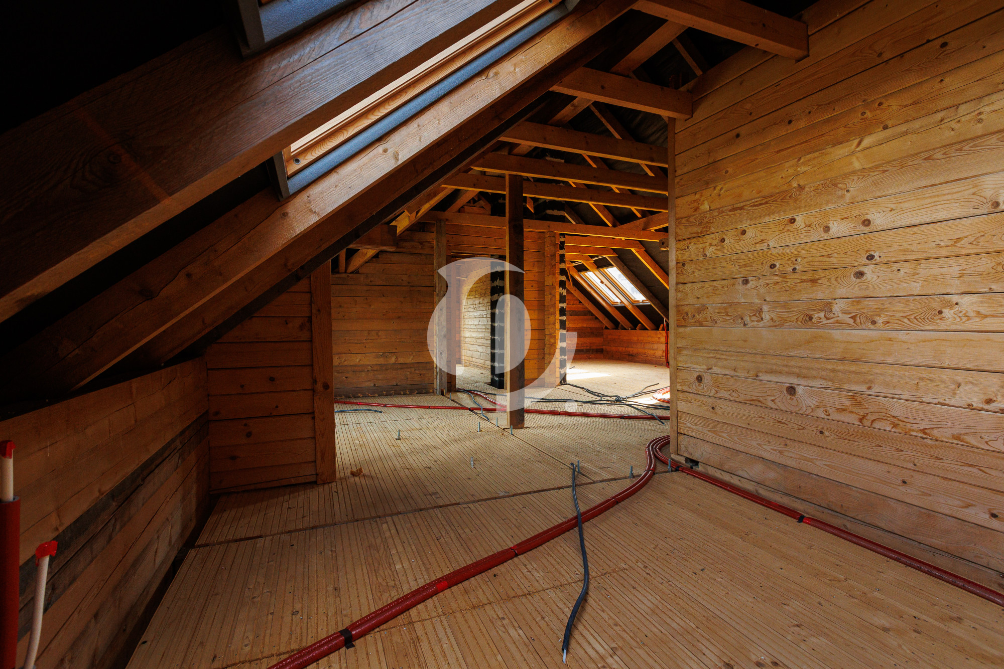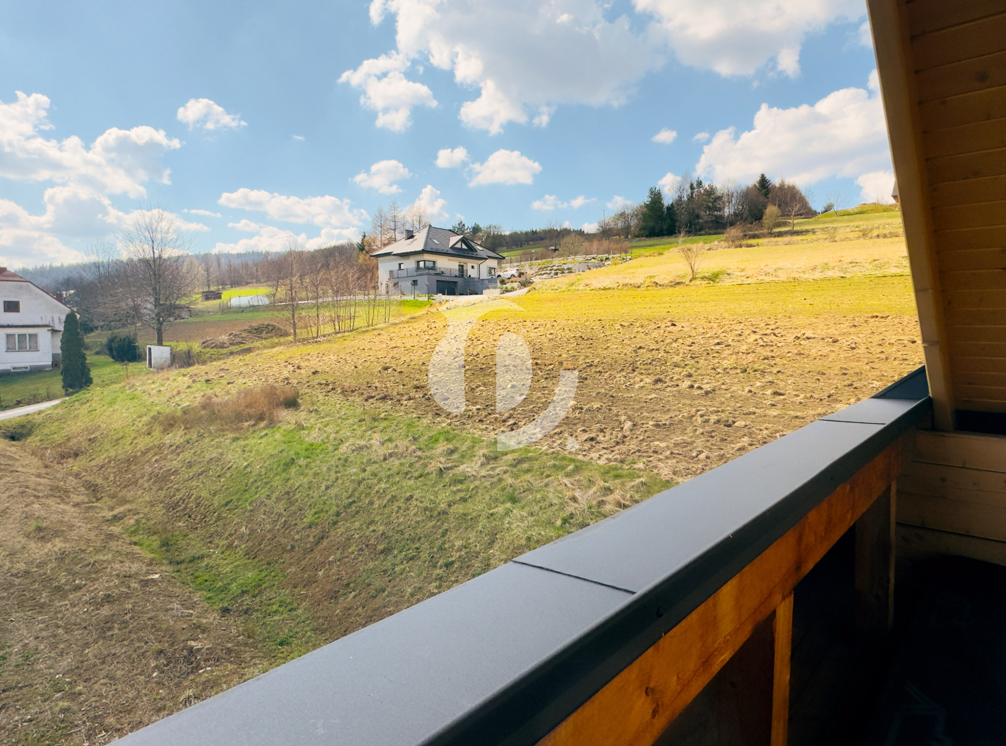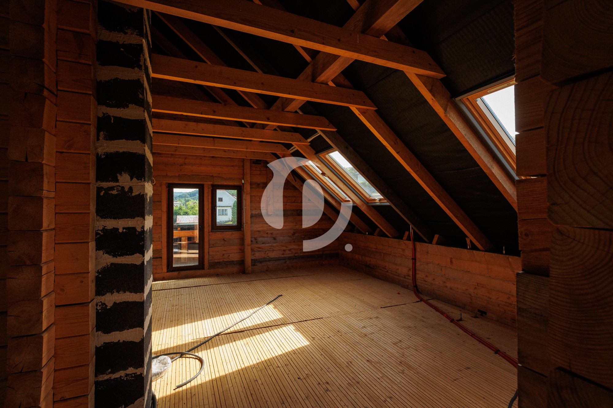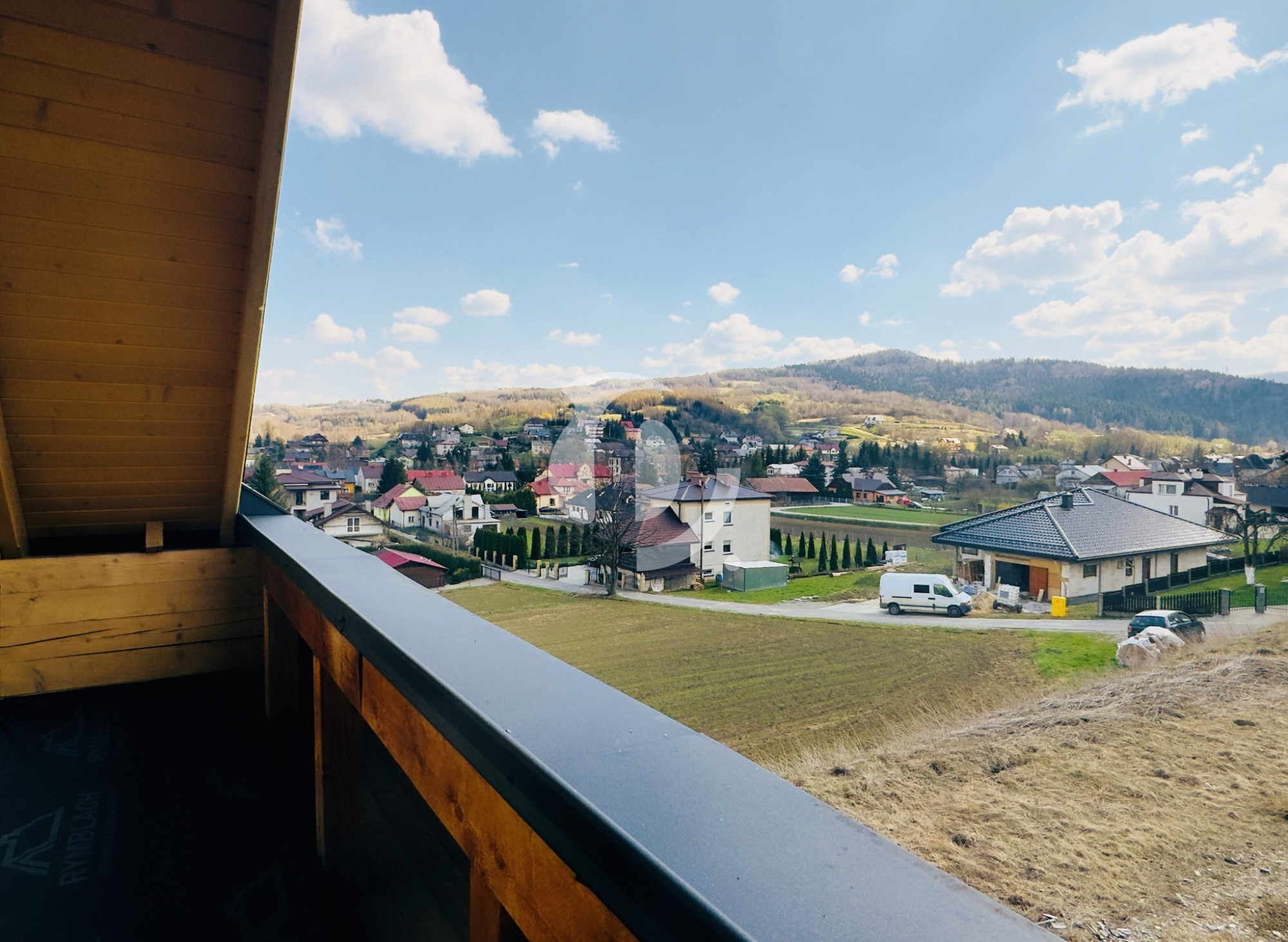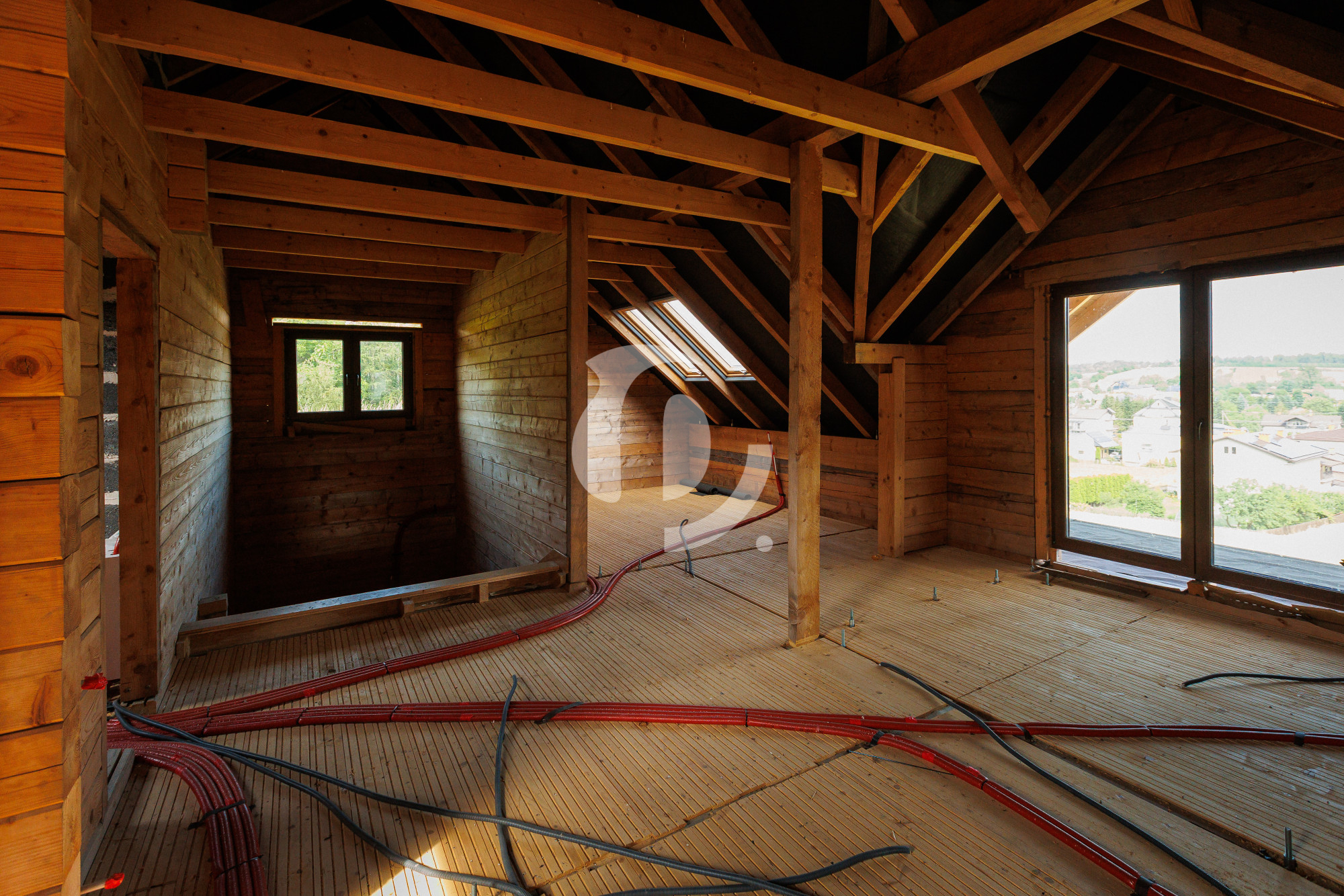 Dom wzniesiony został z najwyższej jakości bali drewnianych (14×18 i 14×20 cm), harmonijnie wpisując się w otaczający krajobraz. Architektura budynku inspirowana jest dawnymi domami z regionu, a jego usytuowanie na wzniesieniu gwarantuje piękne widoki i poczucie przestrzeni. Całość przykryta jest dachem krokwiowo-płatwiowym, pokrytym blachodachówką. Fundamenty żelbetowe, okna częściowo PCV i częściowo drewniane. Budynek gotowy do wykończenia według gustu i potrzeb nowego właściciela.