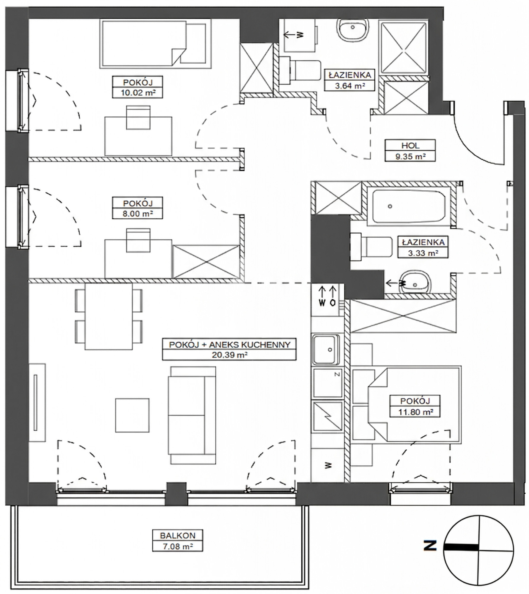 • Duży balkon ekspozycja zachodnia (7,08 m²)