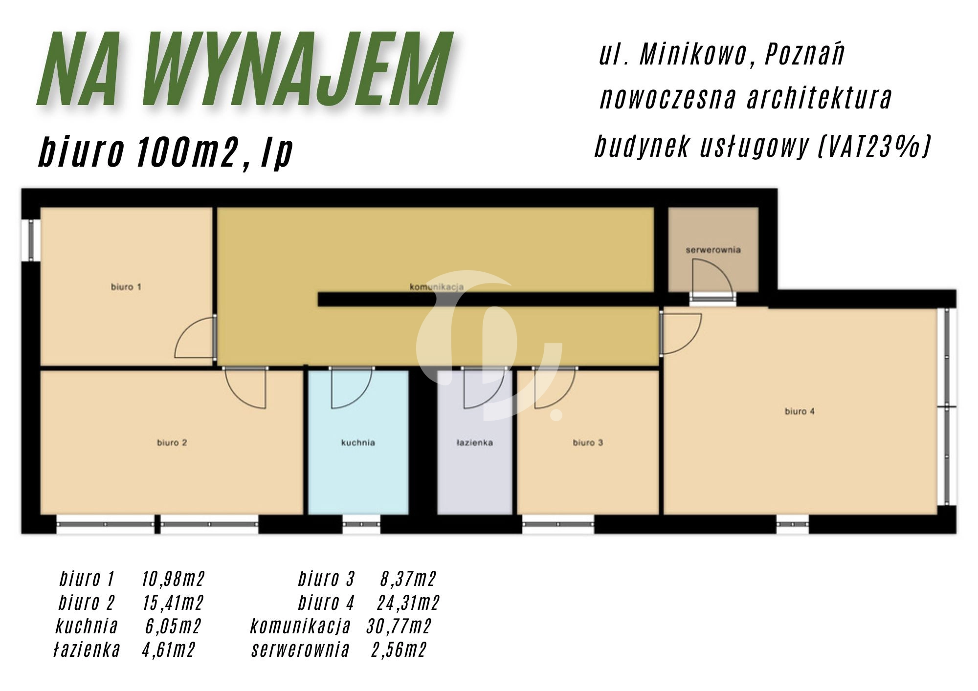 Do wynajęcia nowoczesne i przestronne biuro – całe piętro budynku usługowego przy ul. Minikowo.