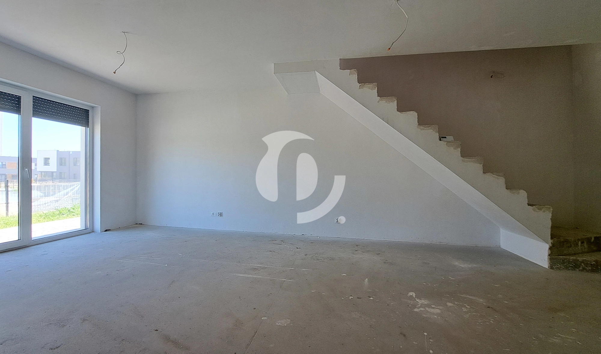 – parter z salonem z aneksem kuchennym, łazienkę z miejscem na prysznic, gabinet oraz komunikację