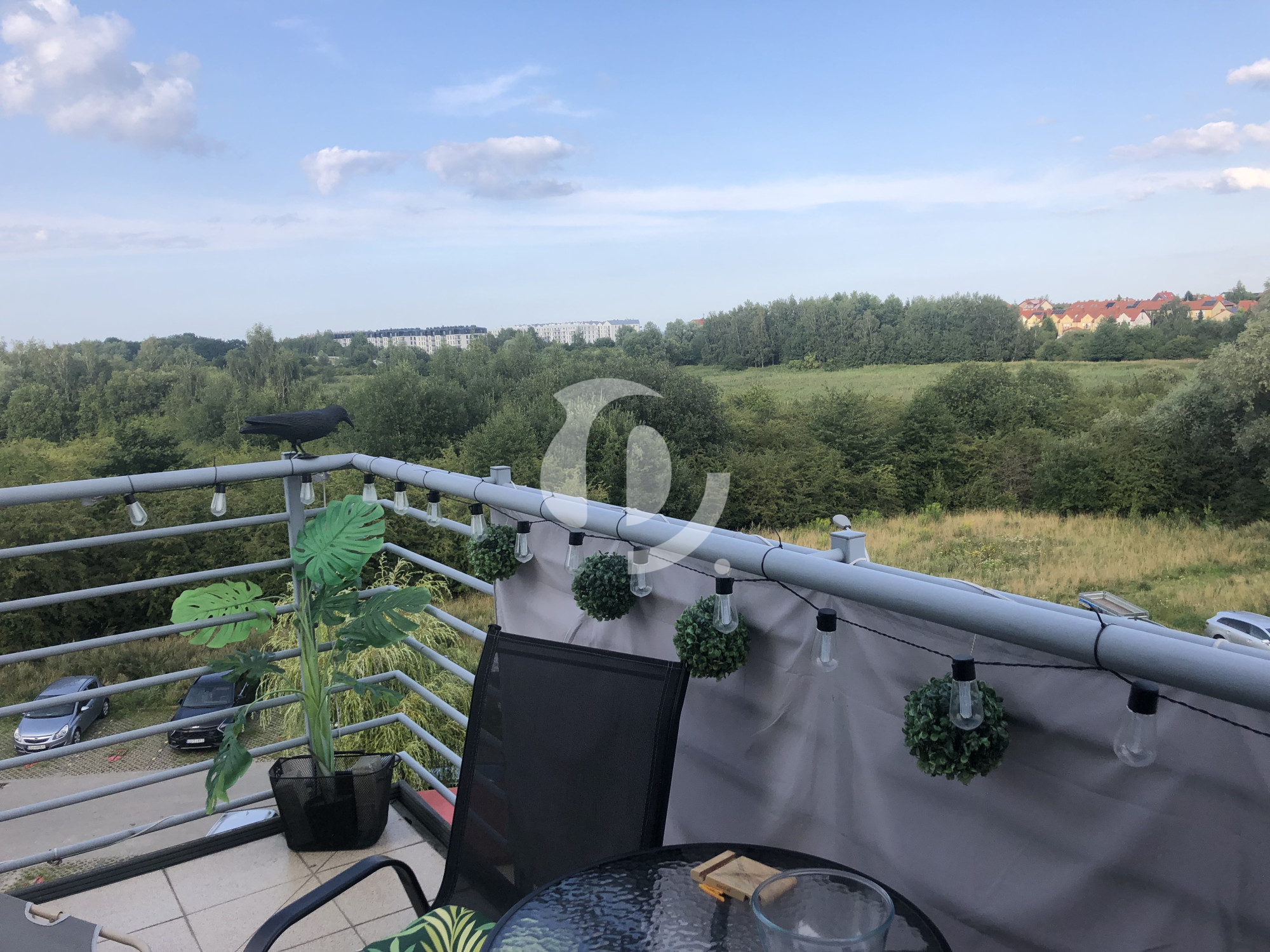 Balkon: Duży balkon z widokiem na zieleń, idealne miejsce na poranną kawę lub relaks po pracy