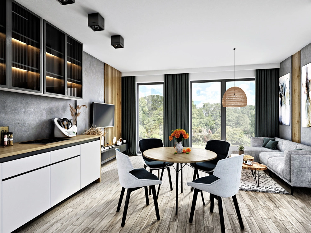 Osiedle składać się będzie z 9 lokali w zabudowie szeregowej, w bardzo atrakcyjnej lokalizacji, która łączy w sobie świetny dojazd do Poznania, Kórnika czy Kleszczewa wraz z sąsiedztwem terenów zielonych.
