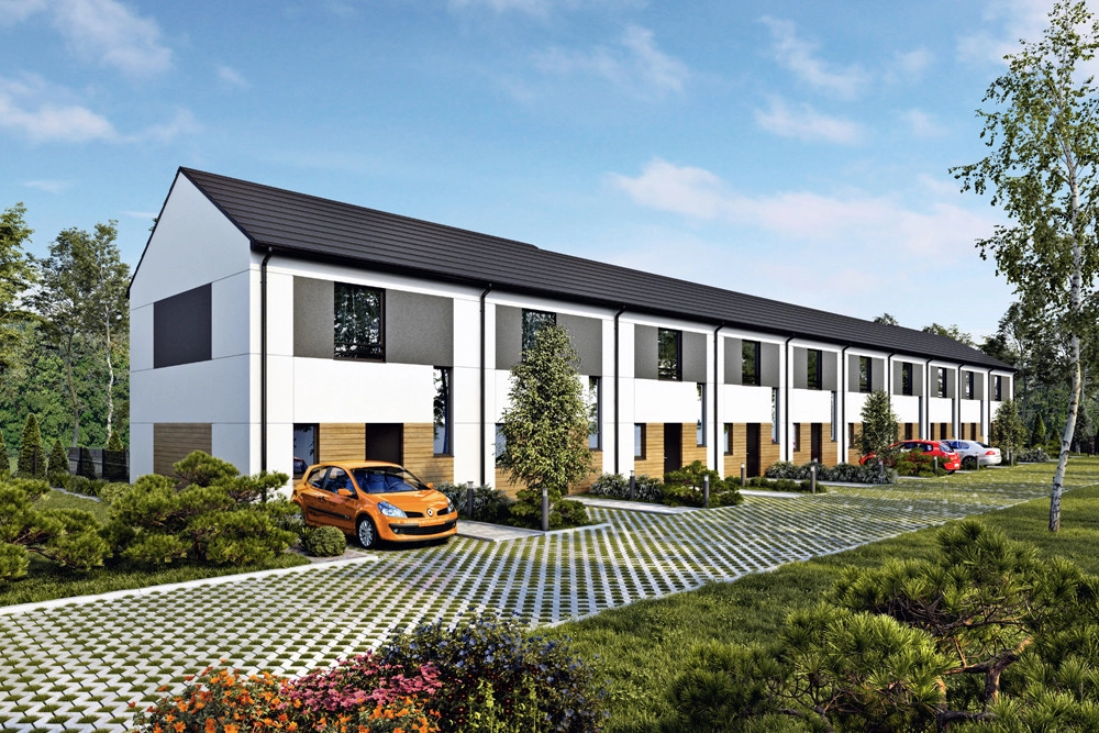 Funkcjonalne, kompaktowe domy w zabudowie szeregowej w podpoznańskiej Śródce, dostępne w dwóch powtarzalnych układach pomieszczeń: