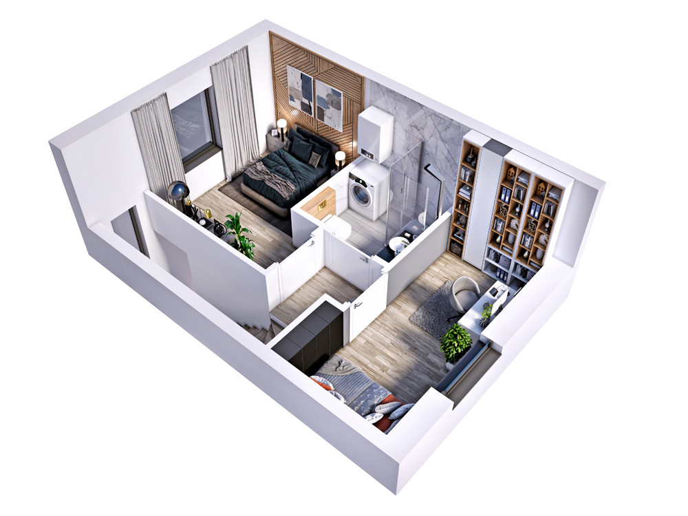 Mimo niedużej powierzchni lokale zostały bardzo funkcjonalnie zaprojektowane a na 53m2 powierzchni użytkowej wydzielono: