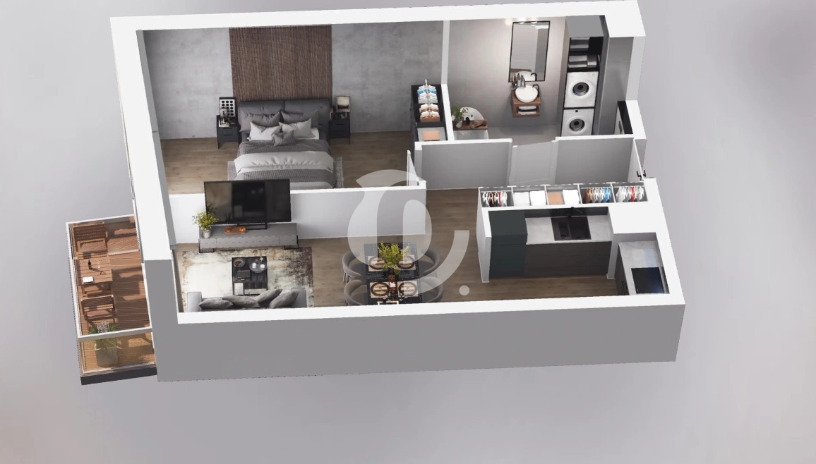 Rzut oraz wizualizacje w ofercie przedstawiają przykładowy sposób aranżacji wnętrza. Powyższa oferta ma charakter informacyjny i nie stanowi oferty handlowej w rozumieniu art. 66 §1 Kodeksu Cywilnego.