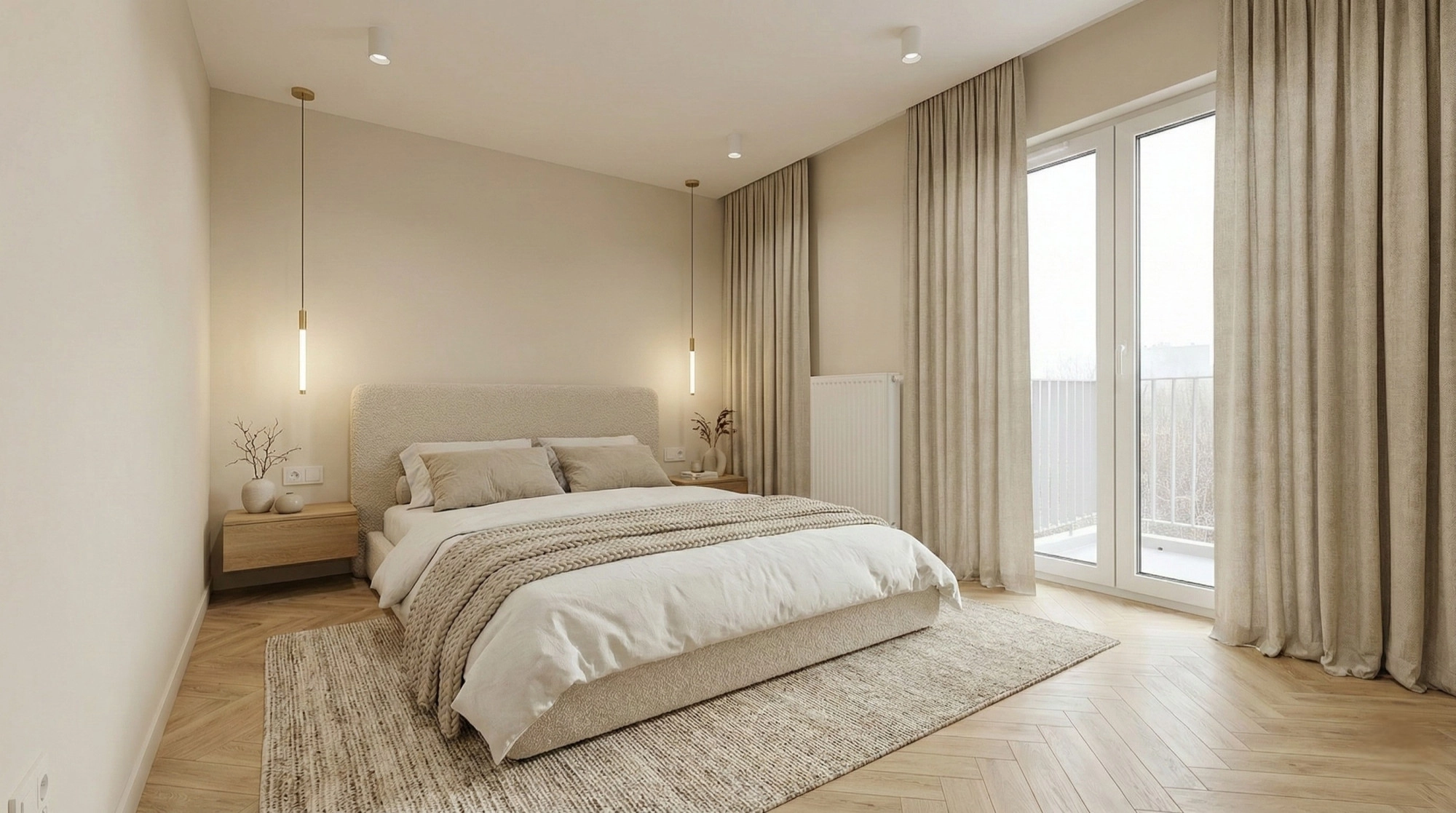 • Sypialnia (14,61 m²): Prawdziwy „Master Bedroom”. Ogromna jak na nowe budownictwo. Spokojnie zmieścisz tu łóżko king-size, biurko do pracy i szafę na całą ścianę.