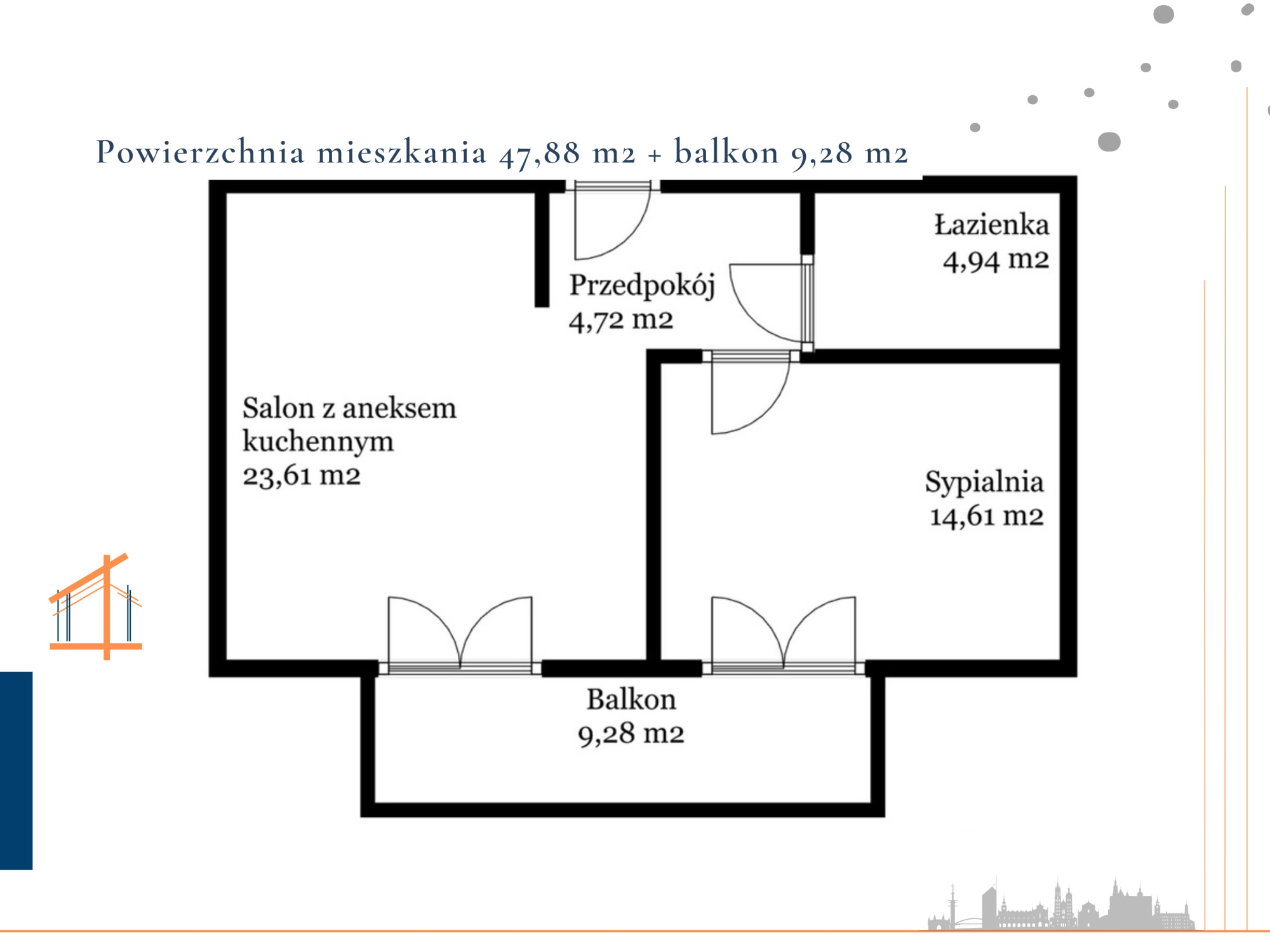• Salon z aneksem (23,61 m²): Przestronny i ustawny. Będzie tu czekać nowa kuchnia w zabudowie, gotowa na Twoje kulinarne eksperymenty. Resztę – strefę chilloutu i jadalnię – zaaranżujesz według własnej wizji.