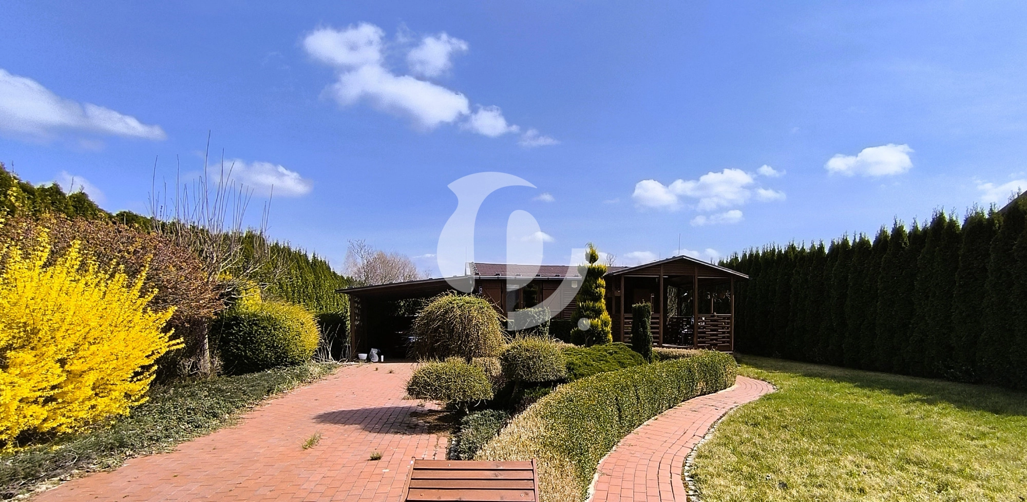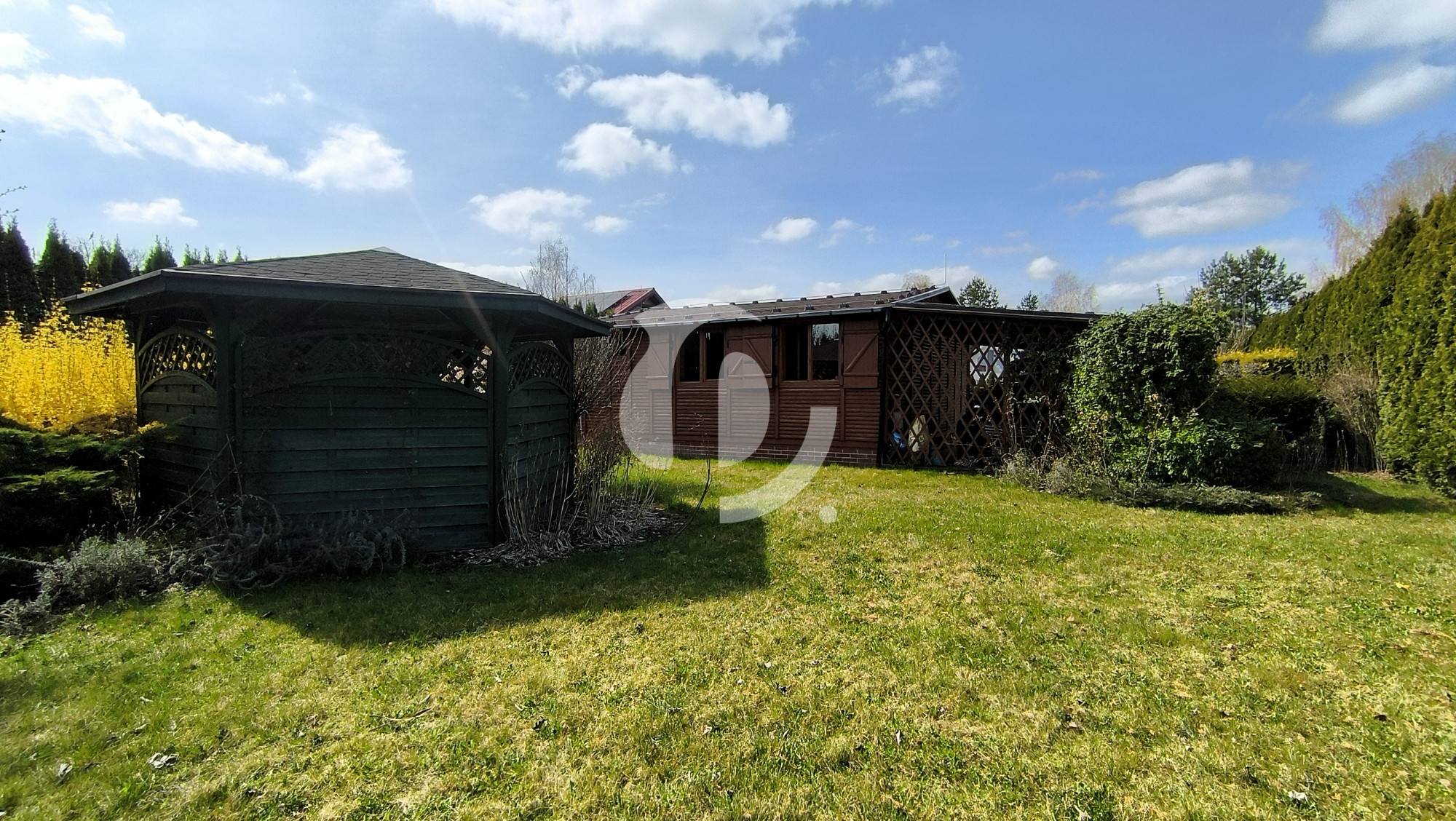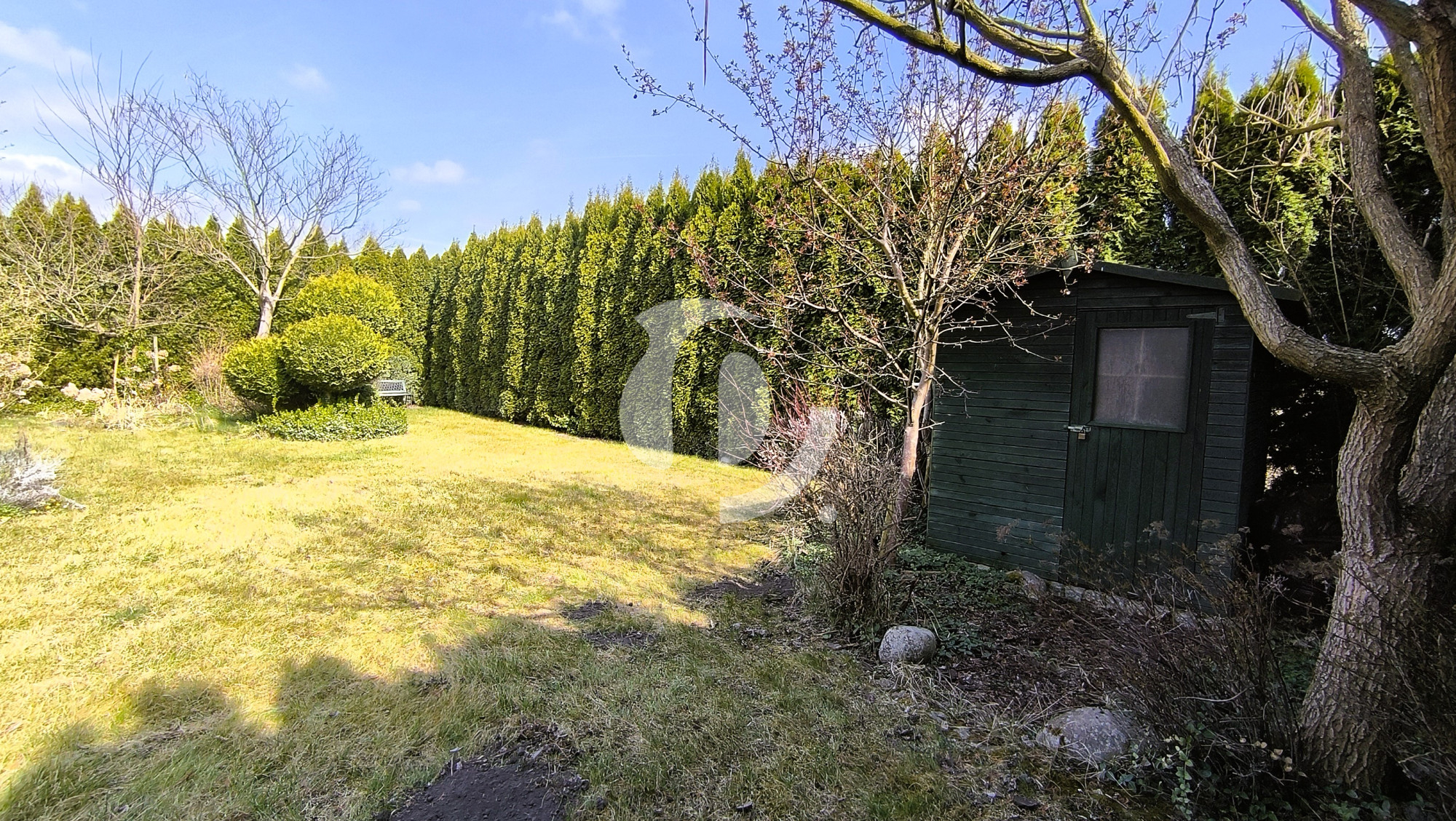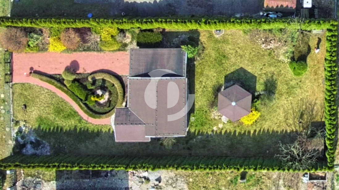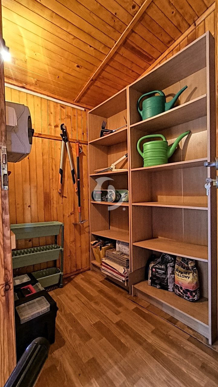 Działka o powierzchni 822 m² jest w pełni ogrodzona: od frontu ogrodzenie z siatki i brama wjazdowa, z pozostałych stron siatka i wysoki żywopłot z tui, który zapewnia prywatność. Ogród z licznymi nasadzeniami, wiatą grillową, domkiem narzędziowym i automatycznym systemem nawadniania.