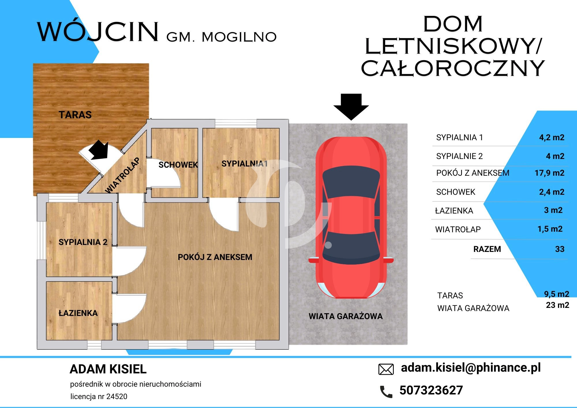 • wiata garażowa przylegająca do budynku.