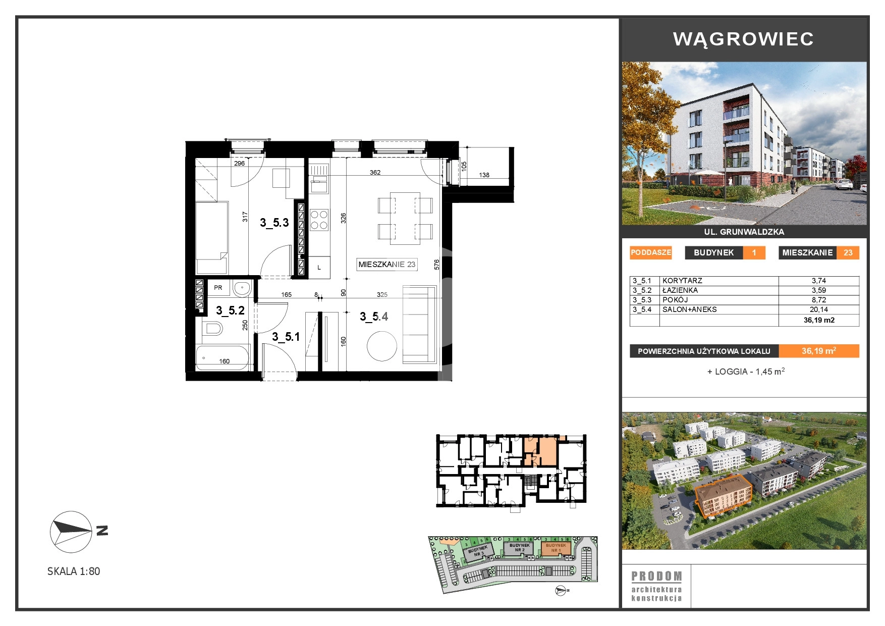 Lokalizacja: Osiedle położone jest w otoczeniu niskiej zabudowy jednorodzinnej, zapewniającej spokój i komfort życia, z szybkim dojazdem do centrum Wągrowca oraz wygodnym wyjazdem na obwodnicę miasta.
