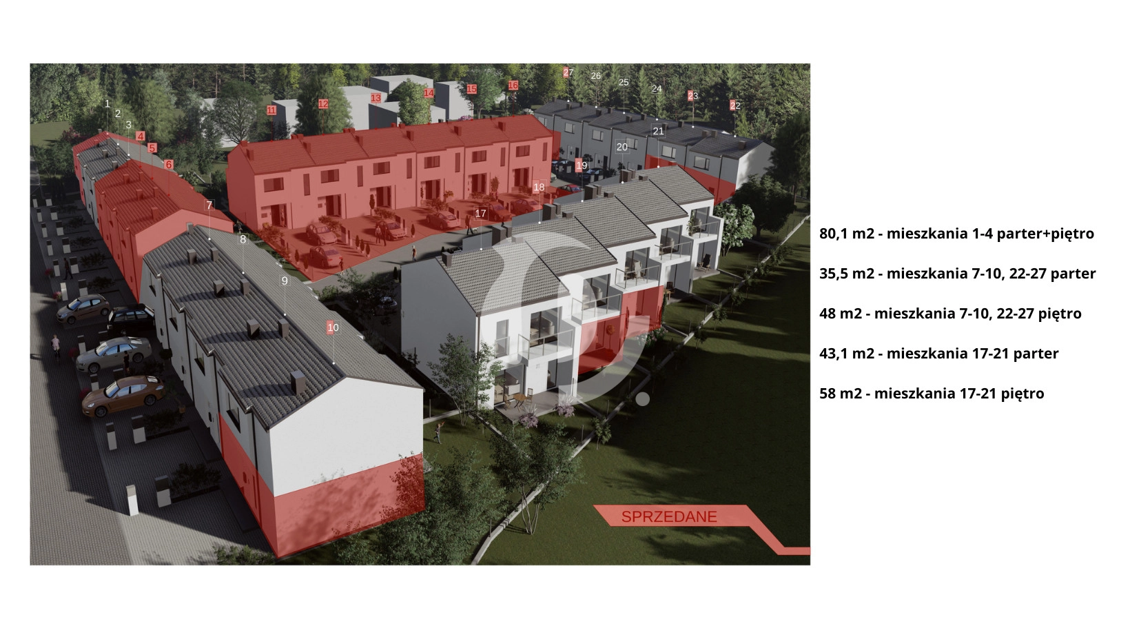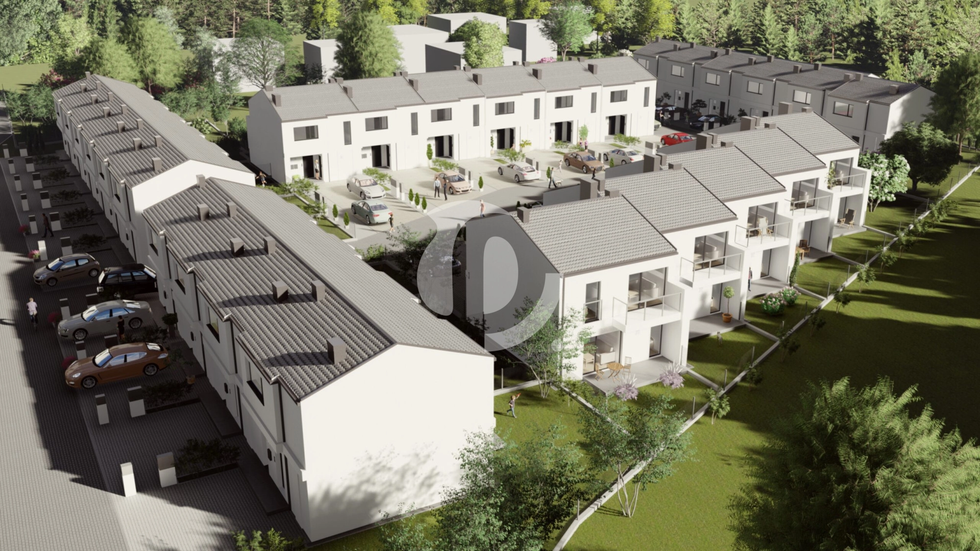 Mieszkanie znajduje się w zabudowie szeregowej wybudowanej w 2023 r.. Materiałem budowlanym z którego powstała inwestycja jest beton komórkowy, który długo trzyma ciepło zimą a latem zapewnia chłód w mieszkaniu.