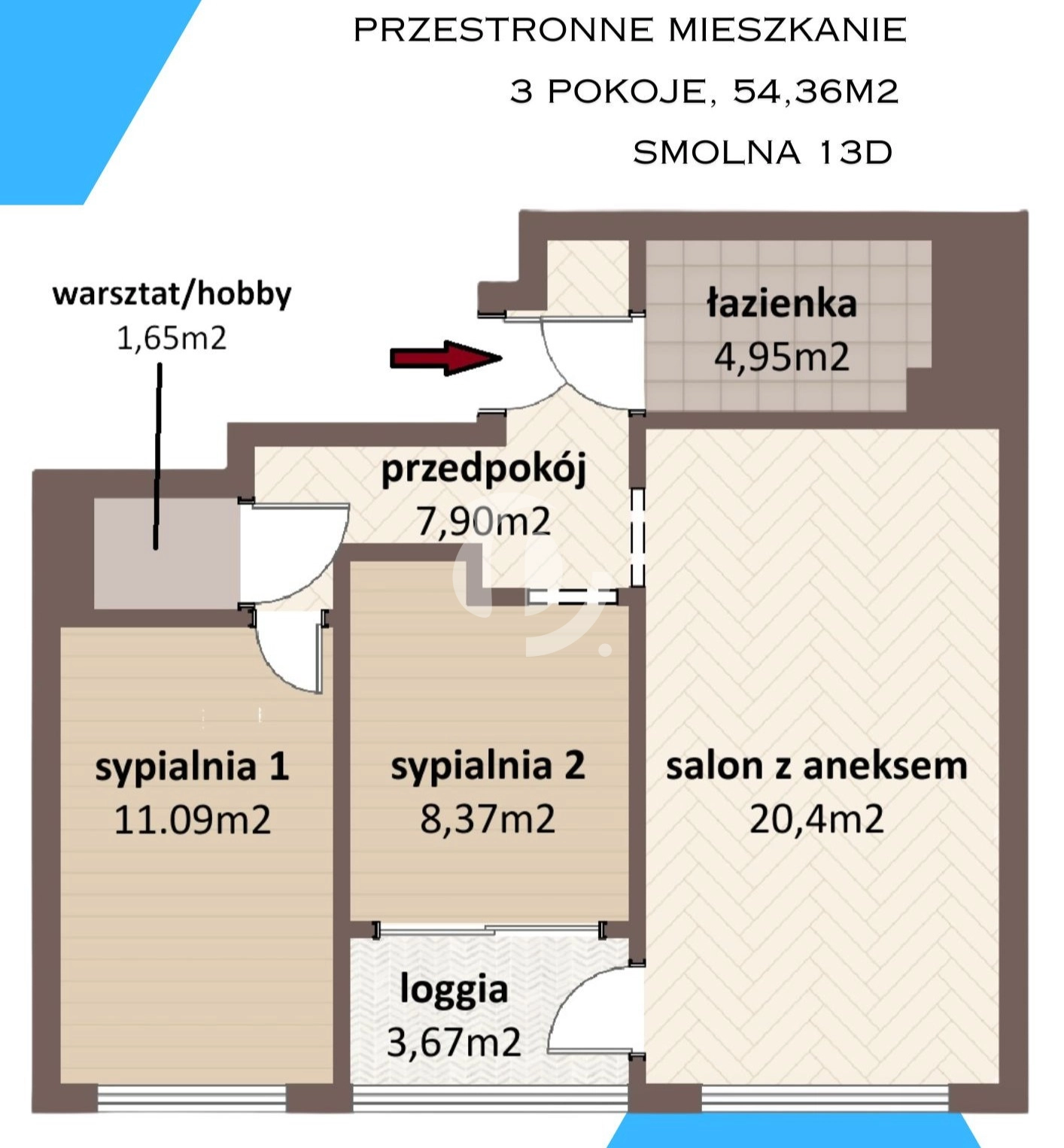 To 3-pokojowe mieszkanie o powierzchni 54,36 m2 łączy w sobie wygodę miejskiego życia i ciepło domowej przestrzeni.