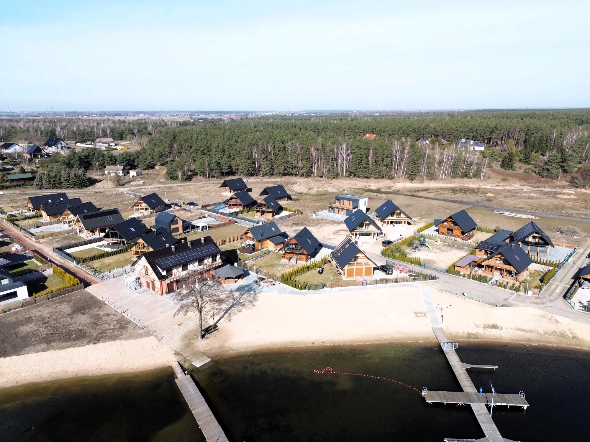 Dostęp do Wody: Bezpośrednia bliskość Jeziora Ślesińskiego umożliwia korzystanie z prywatnej plaży dostępnej dla mieszkańców osiedla.