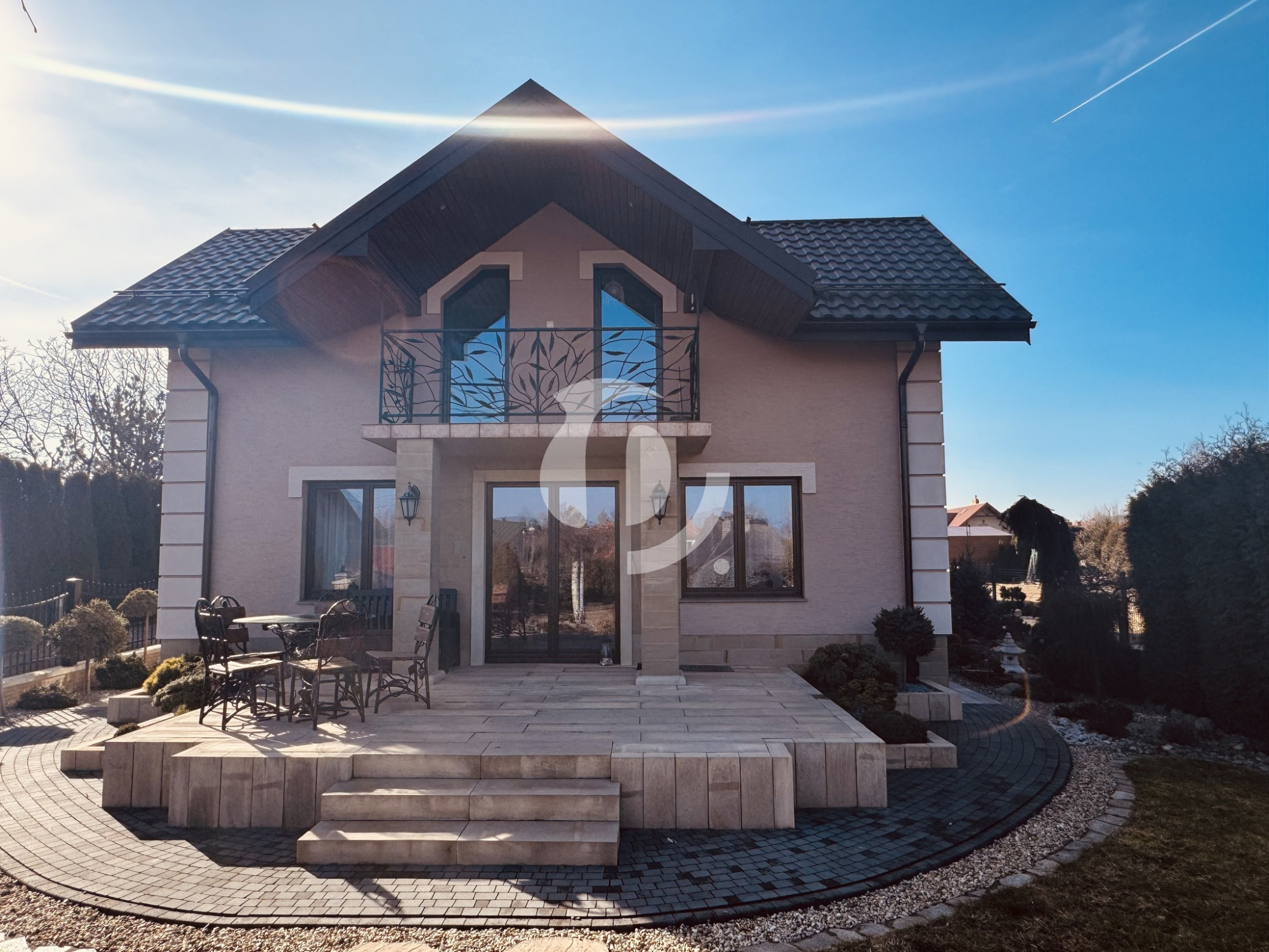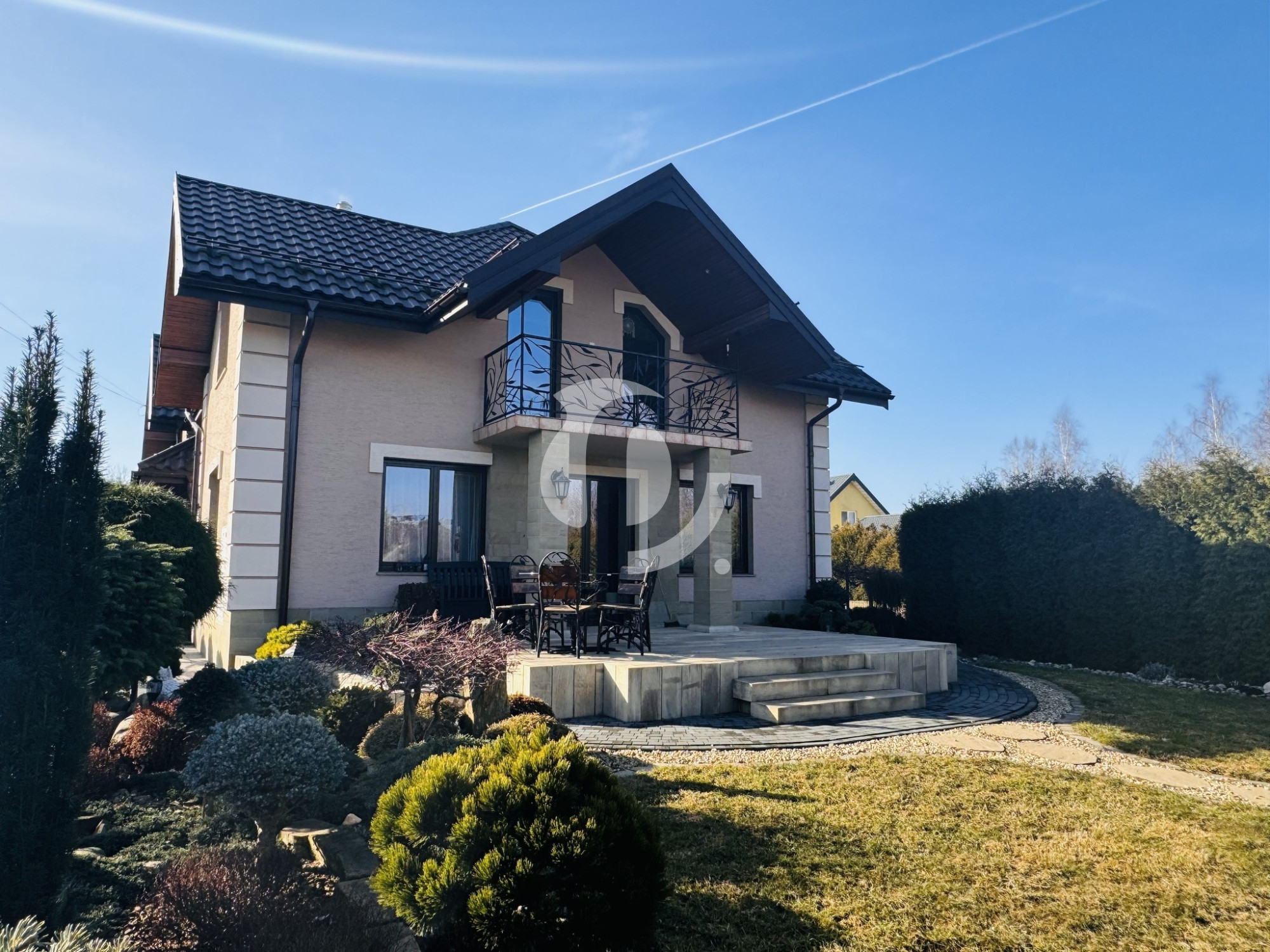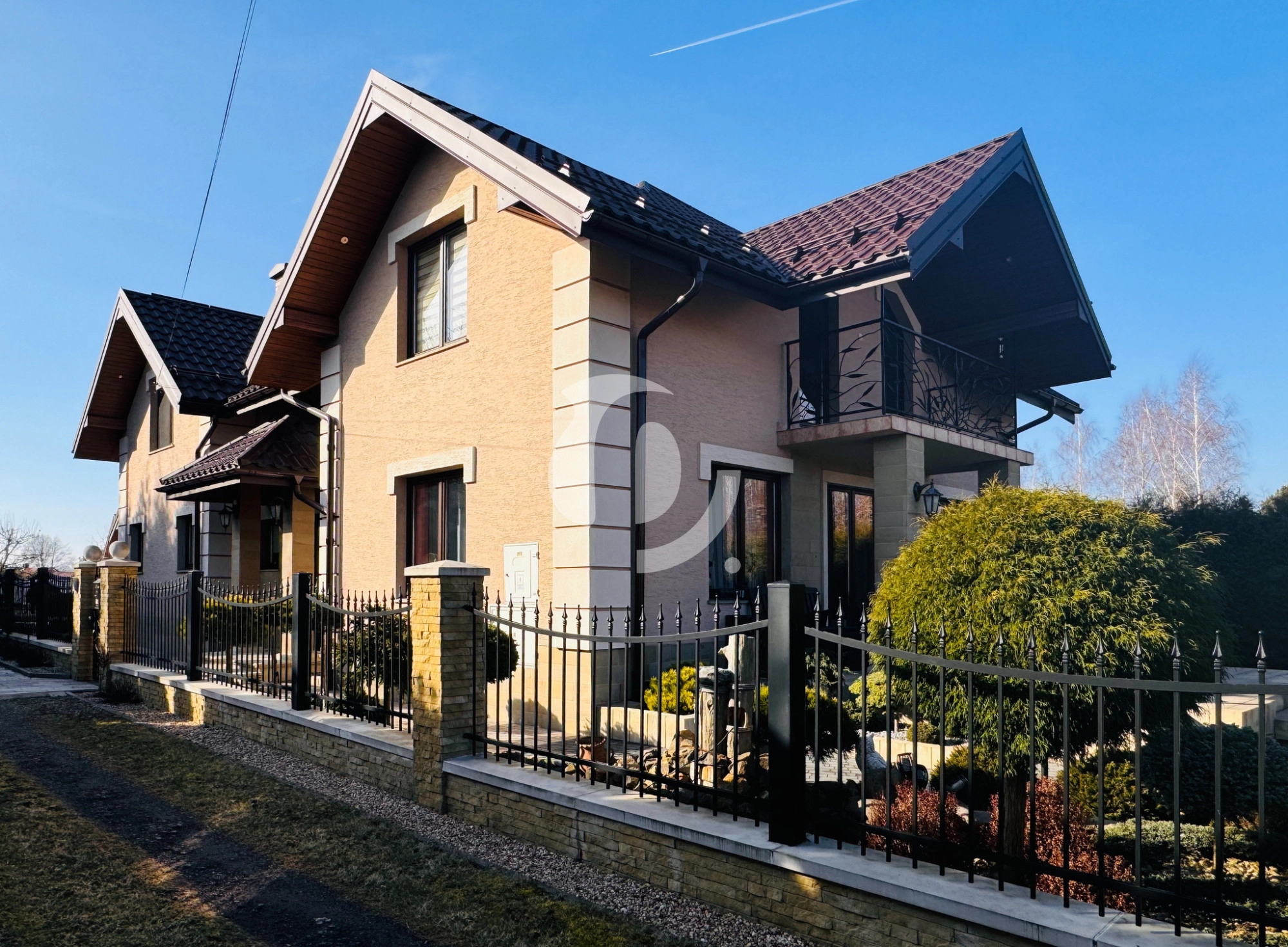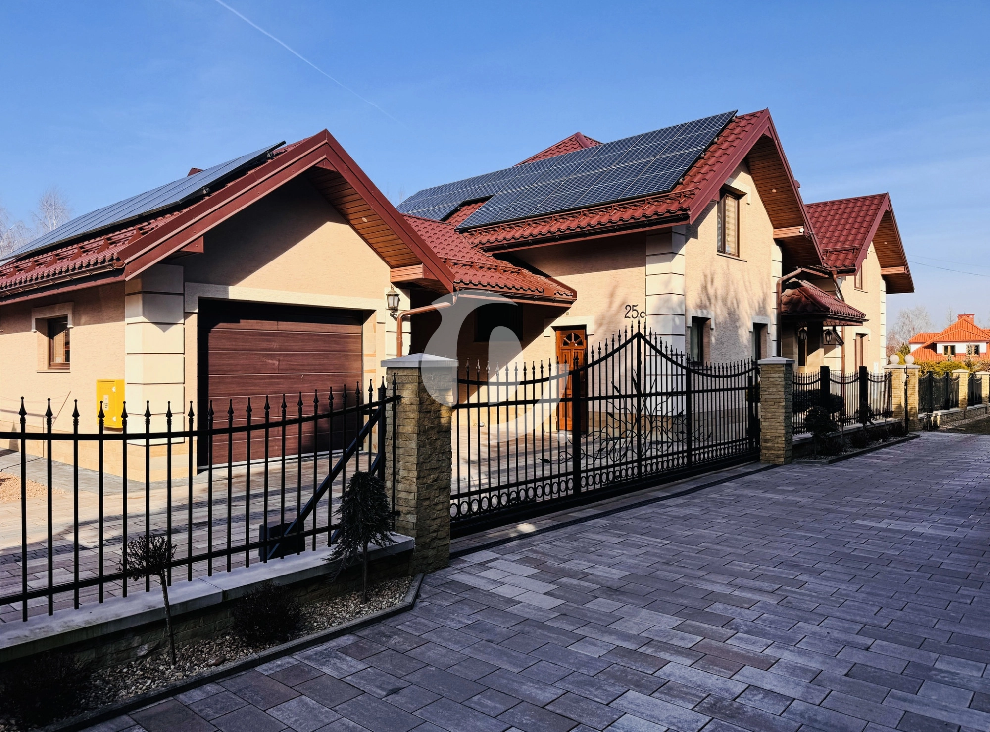 Dom wykończony został z użyciem wysokiej jakości materiałów, co podkreśla jego elegancję i trwałość.